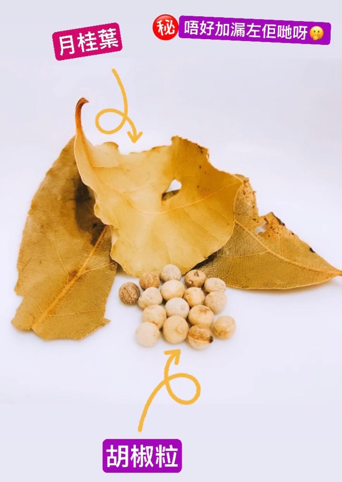 調味料:月桂葉3片、胡椒粒15粒、茄膏3湯匙、檸檬榨汁 ½ 個、鹽少許、水 (隨意,約2公升)