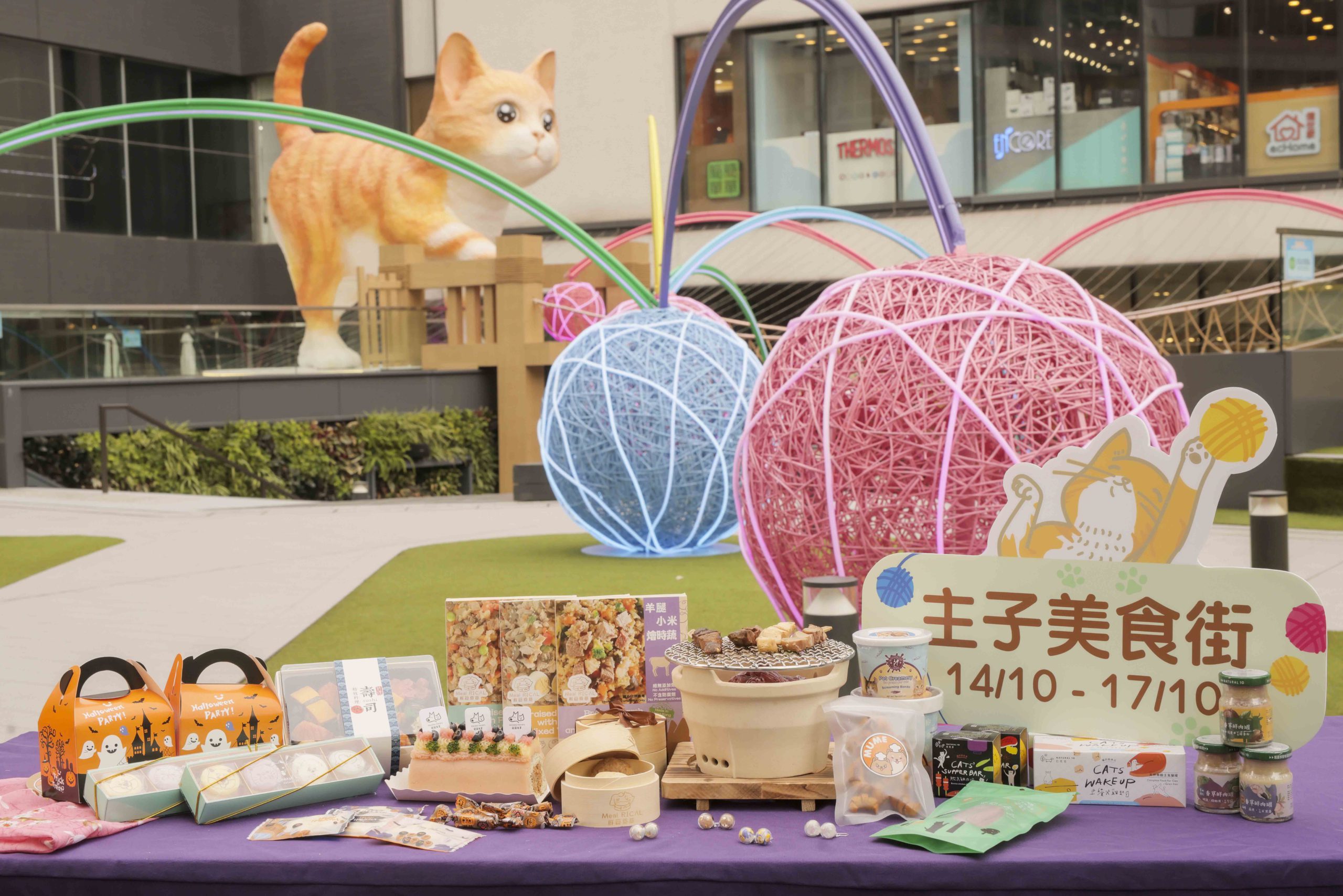 如果喜愛貓咪,就更推介去新都會廣場打卡,設有5米高巨型貓雕像,可以到「主子」的屁屁打卡,角度獨特搞笑。另設有主子美食街,多個檔攤有售充滿營養的毛孩小食如Mume Pets牛角小小酥、Pet Pet Homies泰式串燒、竉竉有賞萬聖節禮盒及咬咬肉球耳環等。