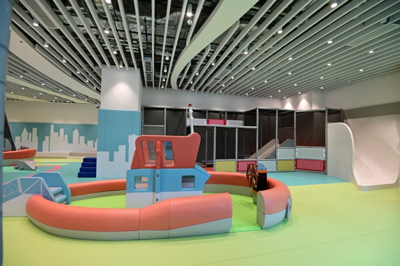 深水埗體育館的遊戲室主題為碼頭,場內有些遊戲設施設計成船隻,小朋友可以在內變成船長,帶領大家出航!而遊戲室入場限額為50人。