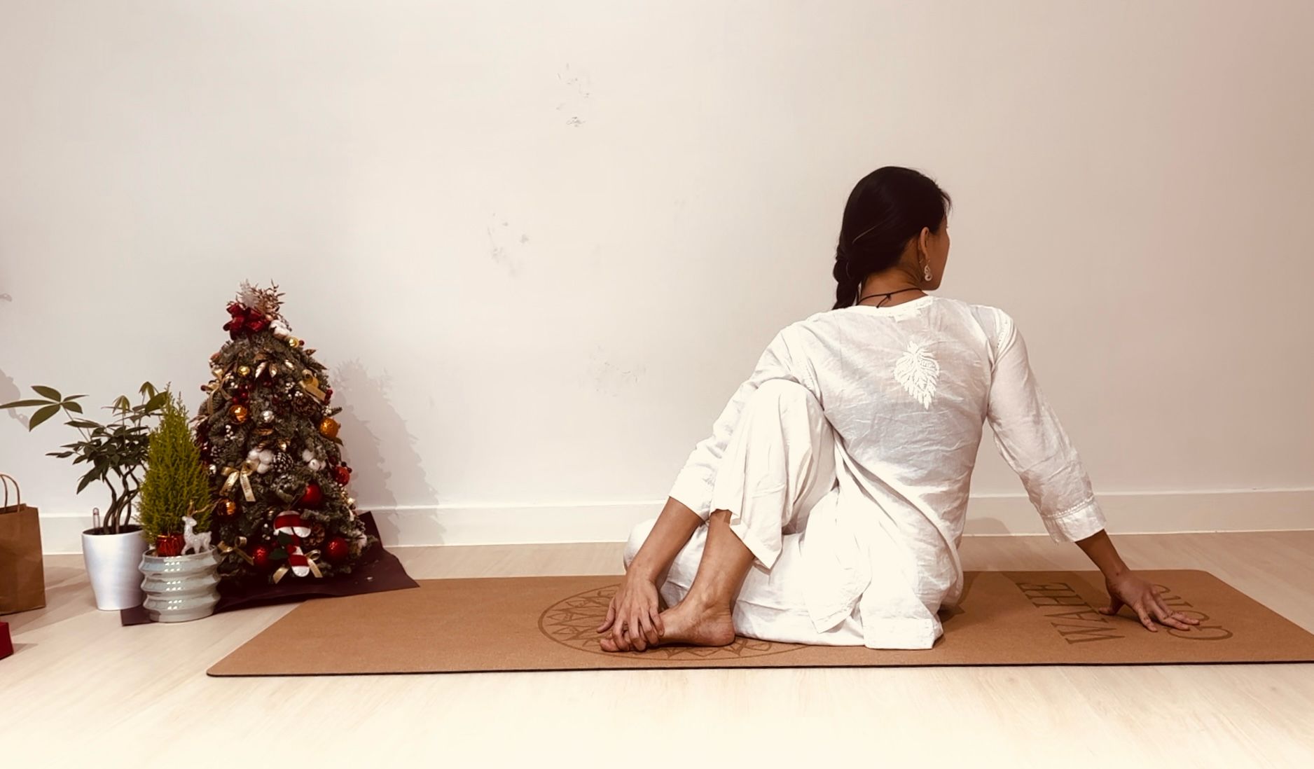 助消化動作1:後顧式(Ardha Matsyendrasana)