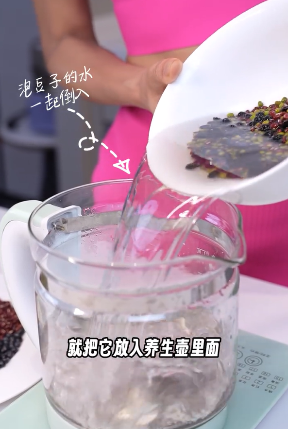 - 把三種豆子和浸泡的水一起放入養生壺,煮滾後放入5片甘草