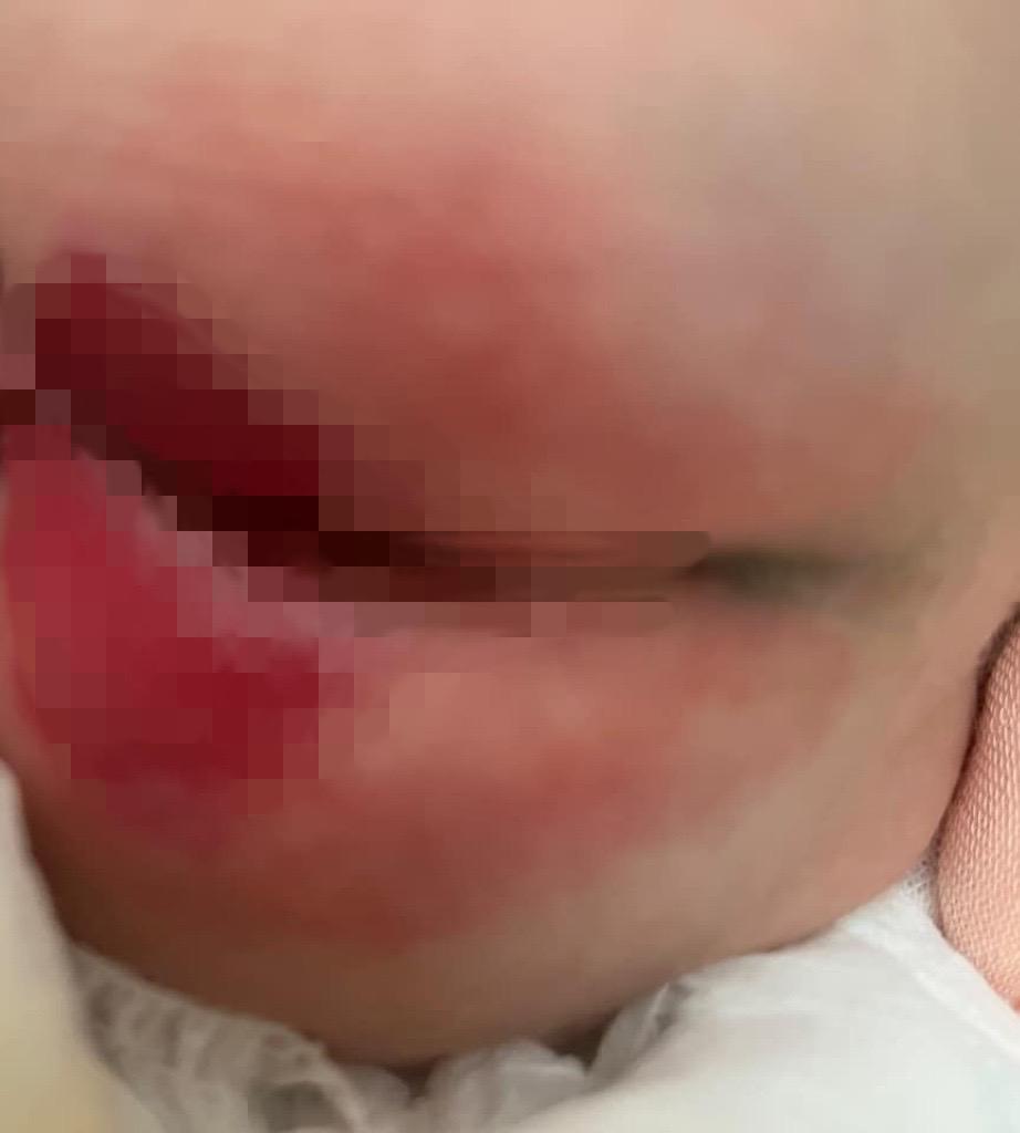 事主亦表示與丈夫都是新手爸媽,不懂為初生嬰兒清理屁股,因此希望才讓寶寶待在嬰兒室,希望可以得到完善照護,但寶寶卻因尿布疹備受折磨,逐漸變得消瘦,屁股甚至被黴菌侵蝕,表皮層已經不見。後來回到家中休養,寶寶只要一大便、擦藥及洗屁股都會大哭。