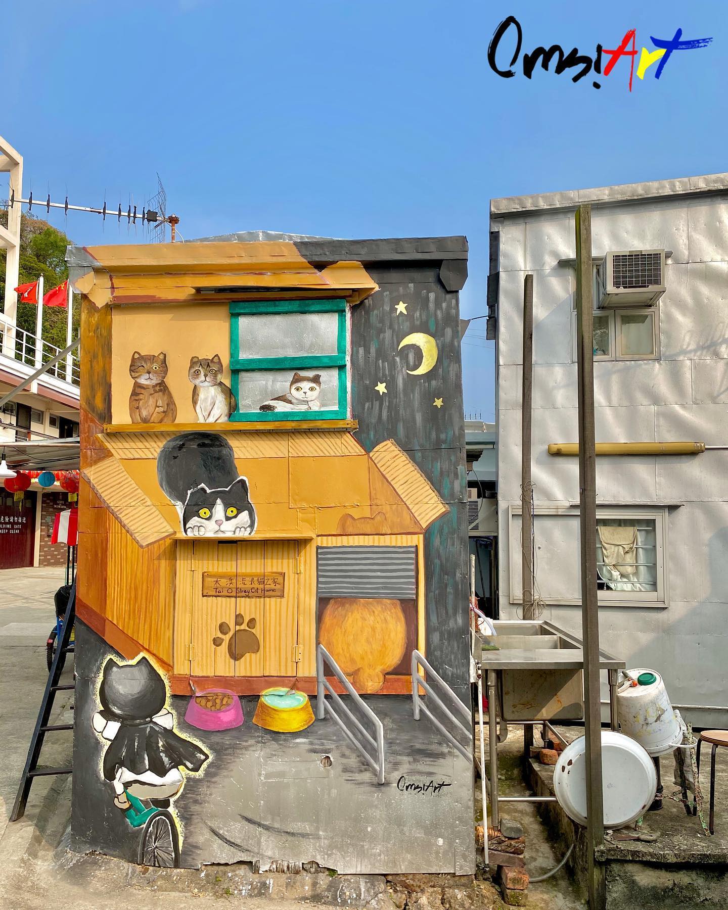大澳非茂里與大澳鄉事委員會和香港歷史文物保育建設合作,推行了「一壁一畫一故事」的大澳藝術活化計劃,邀請了不同藝術團隊、畫家及街坊共同繪製壁畫,以塗鴉牆呈現大澳的風土人情。區內共有7幅壁畫,以漁船、棚屋、水鄉景觀為主題,畫作更延伸至地面,拍照時融入周圍環境。大家參觀時更能站在畫中,營造自己與壁畫景物互動的錯覺。去大澳絕對不能錯過這個景點,透過藝術體驗大澳文化!
