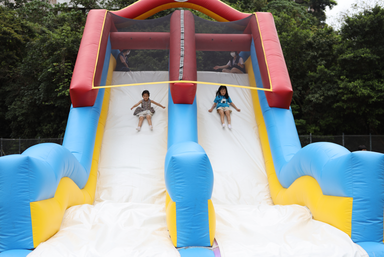 步行回香港國際學校大草地,大家可以野餐、欣賞現場表演,好好放鬆一番。現場亦設有一系列攤位遊戲,包括拓印工作坊、大型充氣彈床、蒙眼體驗,以及更多智樂遊戲。