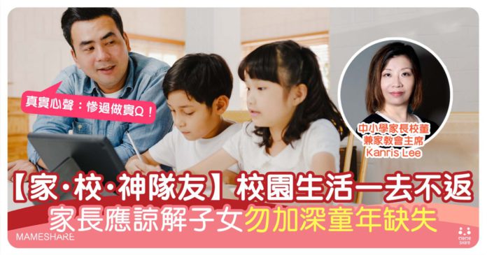 孩子一去不返的校園生活 —— 疫情影響下,孩子要在家學習,失去了與同學相處、參與團體活動的機會。疫情剝奪了孩子的校園生活,家長也失去了自由時間。作為家長,可以如何平衡子女心理上的缺失?下文有中小學家教會家長校董Kanris Lee和大家分享看法。