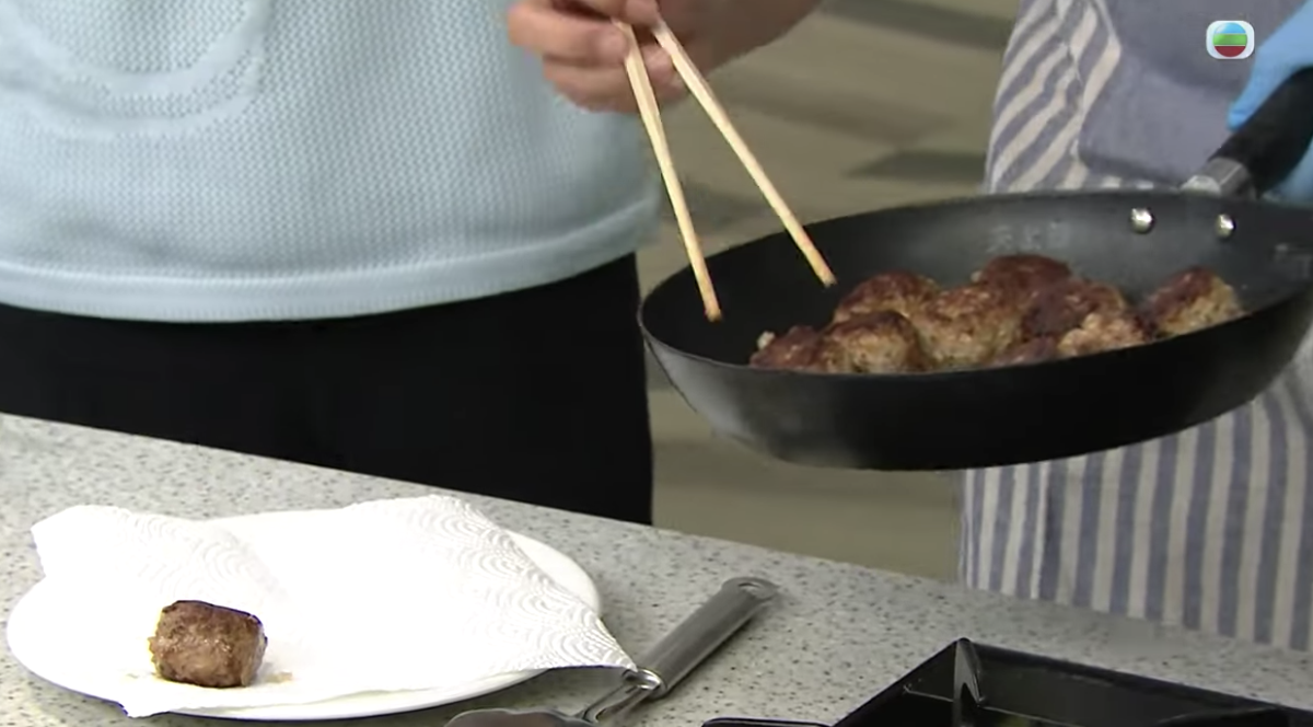 2. 起油鍋,放入肉丸待煎至上色後翻面,煎好後取出備用