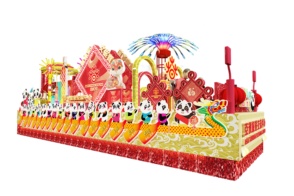 今年的年初一花車巡遊將有9輛花車登場,這些花車在設計上大多融入了香港的地道元素,例如近期大熱大熊貓主題,將熊貓聯乘香港特色美食奶茶亮相。此外,亦有花車以蛇的線條為靈感,以香港天際線為主題,勾勒出香港地標風貌。另外花車當然少不了節慶元素,不少花車亦用上了賀年字句、精美風車、揮春及繁花等向大眾拜年。