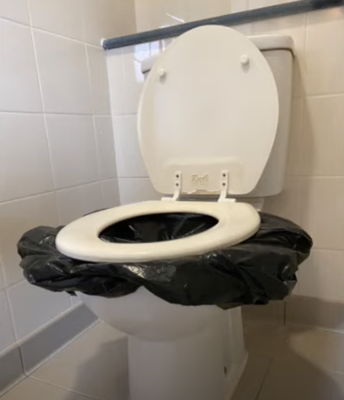 1. 可用膠紙先把垃圾袋貼在坐廁上,再放下廁板或使用尿片