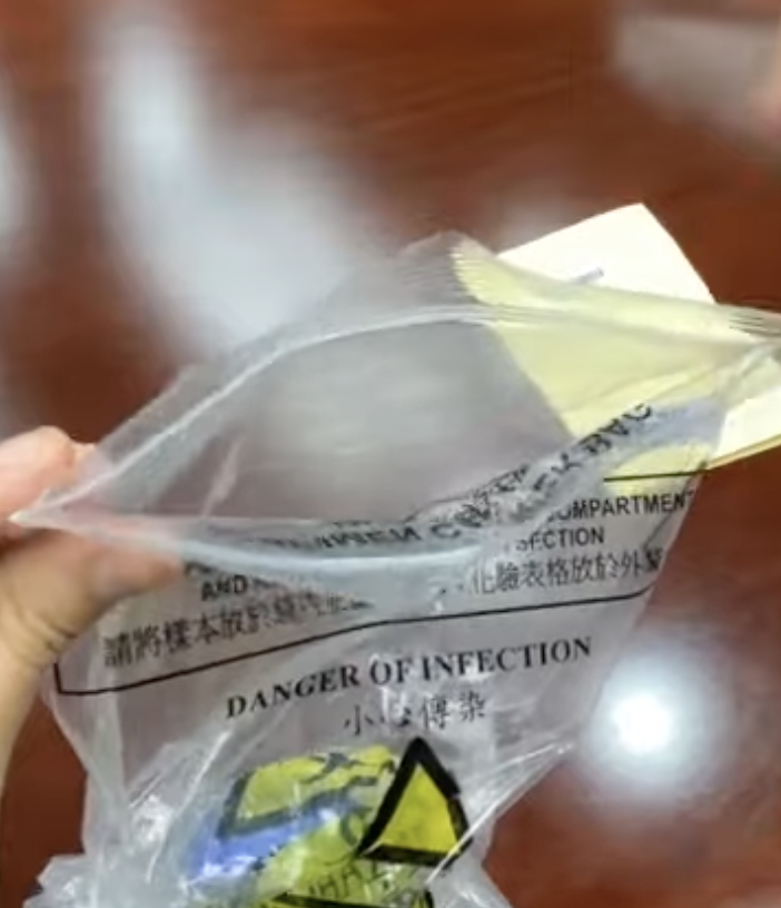 6. 將載有樣本瓶的樣本袋放入第二個樣本袋(樣本收集袋) 並密封袋口,將已填妥的表格放於樣本收集袋的外袋