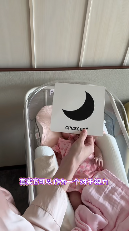 連詩雅表示在囡囡出生十日左右就可以和她玩"黑白卡"進行追視訓練,因為嬰兒在一個月大時,只能看到黑白色,以黑白卡作為追視訓練非常適合。她提醒,和小朋友玩的時候,光線要充足,卡和小朋友的距離大約是20至30厘米左右,每一張卡停留在她的視線半分鐘左右。