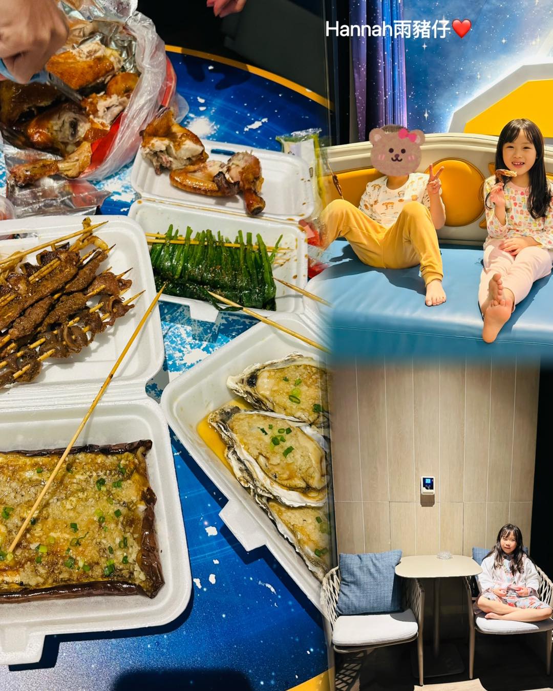 酒店的餐廳有個超長滑梯可以玩,令小朋友十分開心。不過,雨豬仔媽媽表示早晚餐都是以自助餐為主,亦因為比較多人,所以建議要早點去找位子。她更指食物味道一般,不抱太大期望,所以晚上叫了美團回房間吃宵夜。