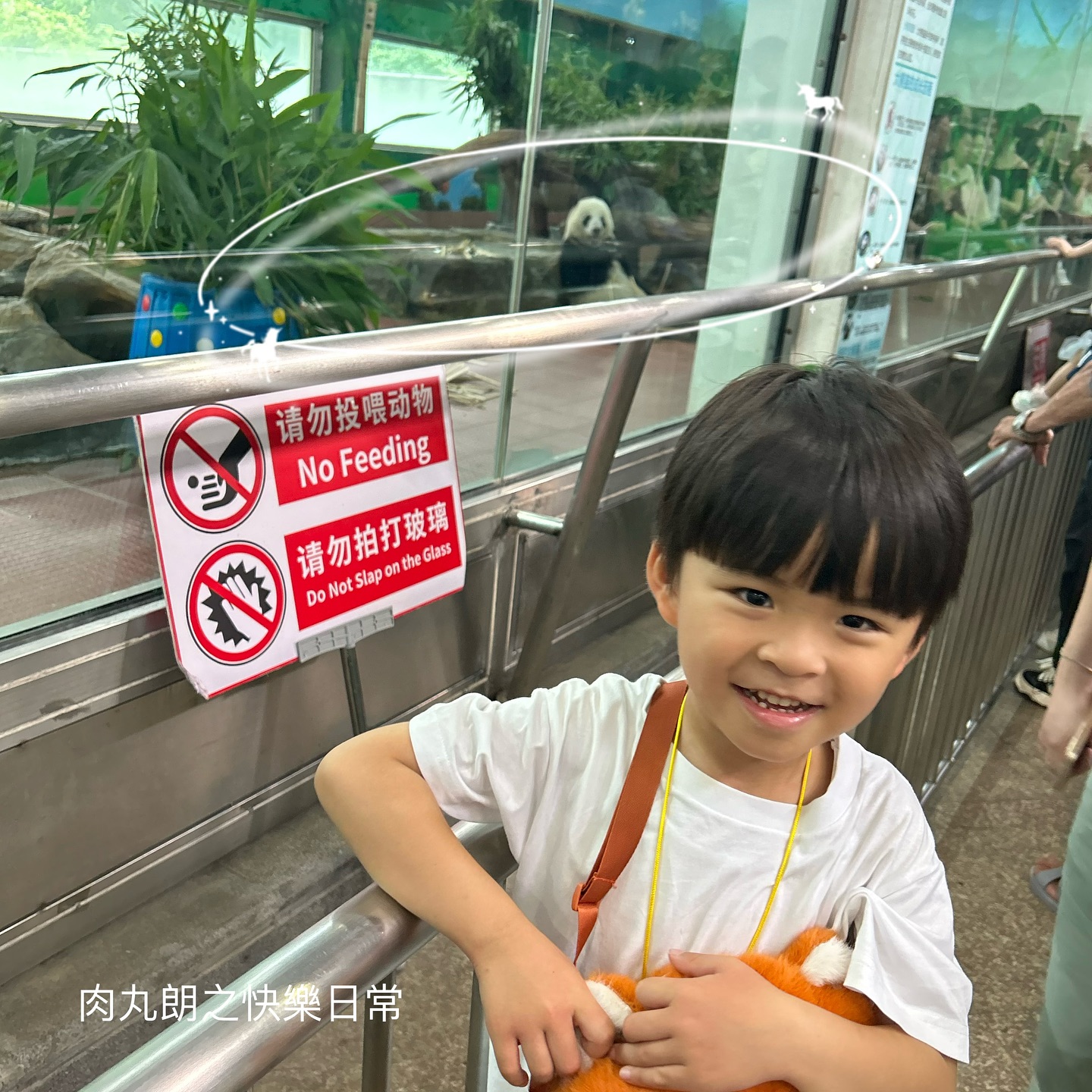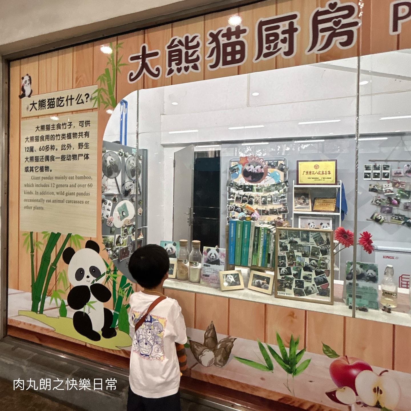 肉丸朗一家還在熊貓館看到國寶大熊貓,媽媽認為這裡可以近距離觀地看到,而且大熊貓還不斷地食竹葉,小朋友又可以學習很多科普小知識。