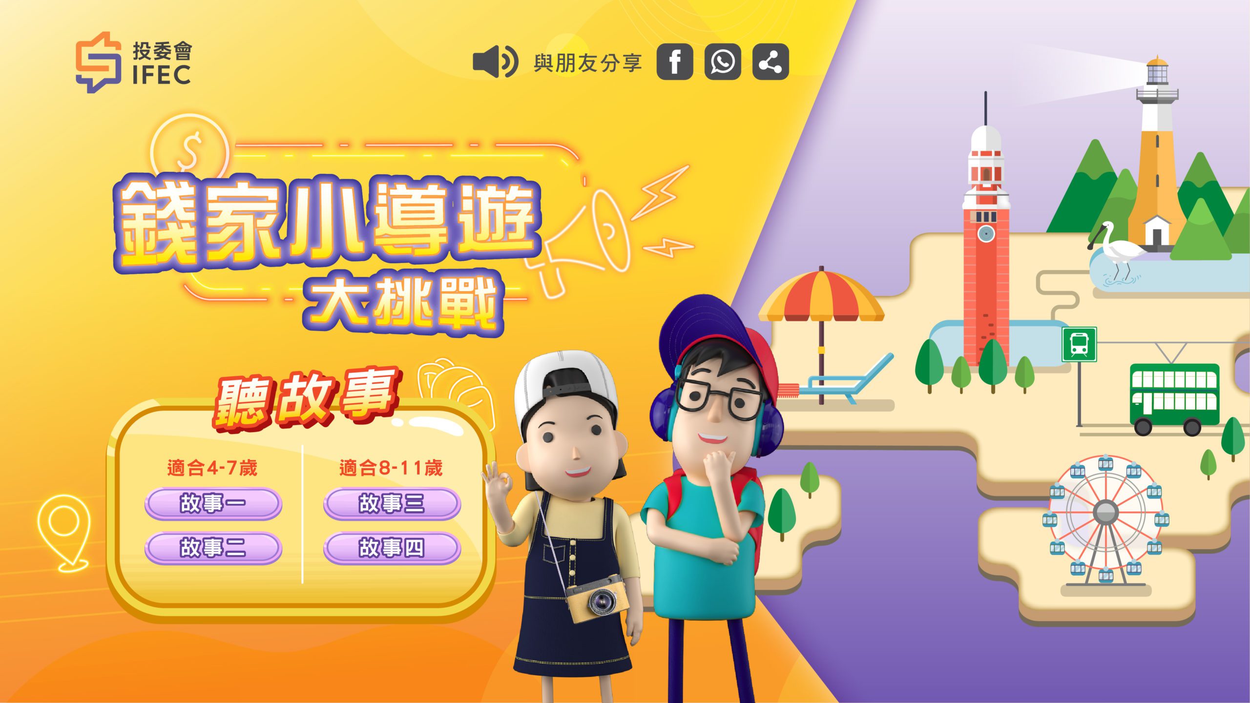 投委會推出錢家小導遊e故事,各位小朋友可以觀看一共4集的互動理財故事,與錢妹和阿錢一起計劃露營旅行,為錢媽慶祝生日,過程中小朋友會學習正確的消費態度,為錢家兄妹作出抉擇,增加理財能力!