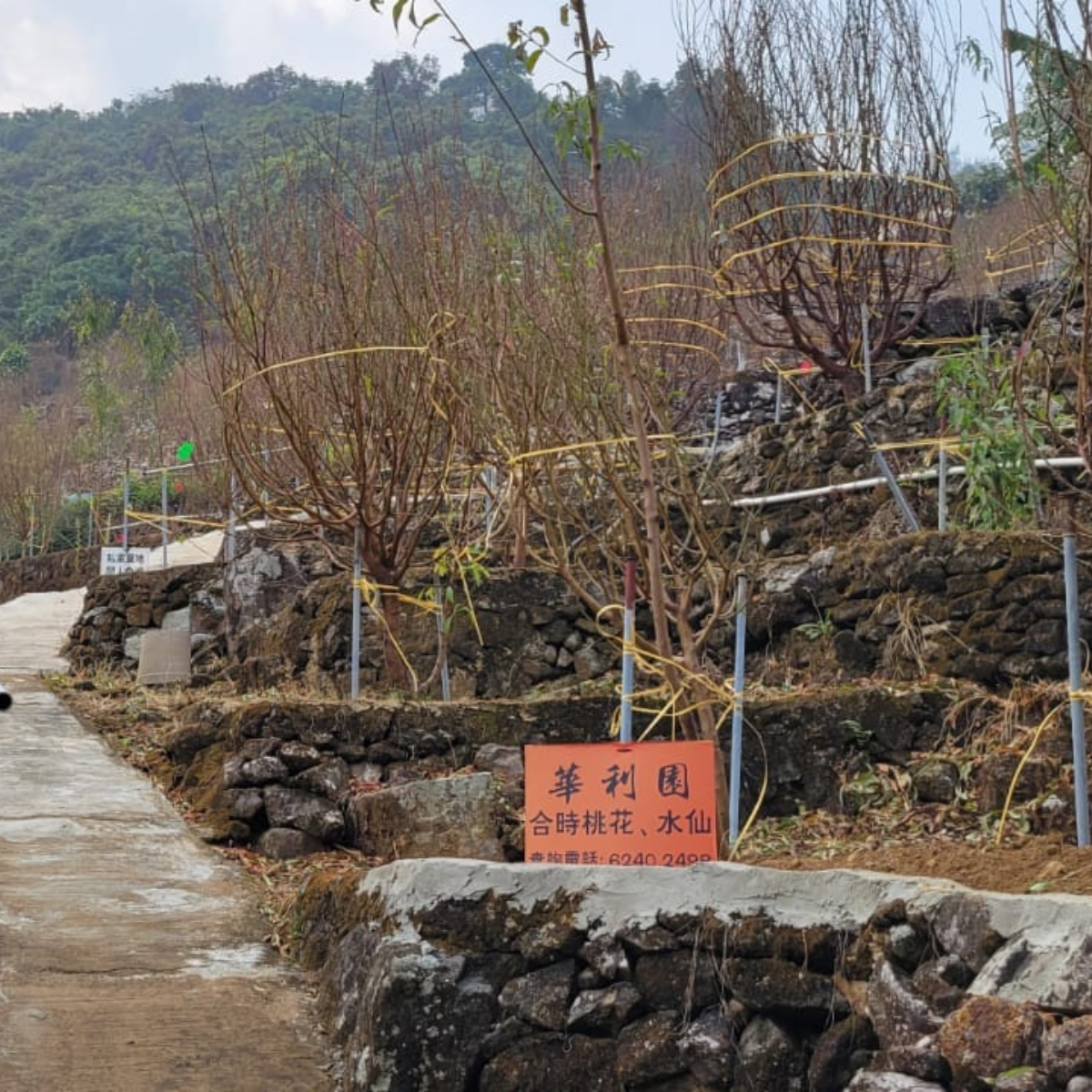 荃灣華利園是以梯田種植桃花的花場,當中有適合家庭和公司呎吋的桃花,另外也有出售單托水仙和雙托水仙,每年都很搶手。