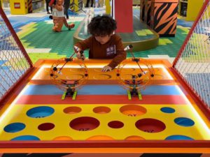 場內設3大免費互動遊戲,考驗小朋友各項能力。「虎虎STUNTZ威」全新樂高城市系列特技車場景,小朋友可以控制特技車飛越關卡,降落指定位置取得分數,遊戲考驗力度控制能力,可以訓練小朋友的手部肌肉和眼界;「迷你樂高老虎拼砌室」有大量樂高顆粒,小朋友可以在指定時間內挑戰拼砌多隻迷你樂高老虎,不過要注意不可帶走樂高老虎。