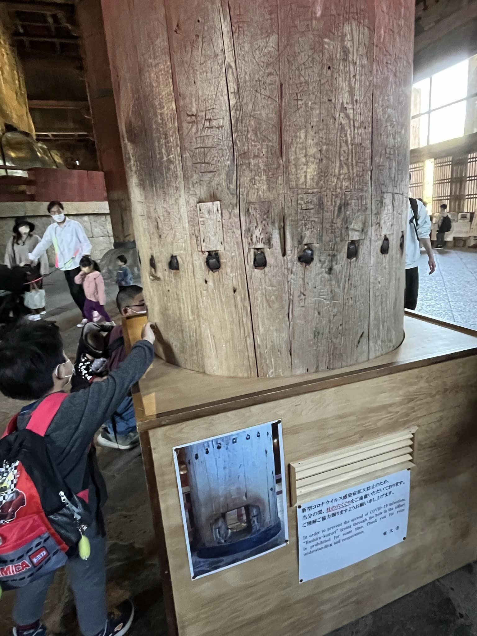 文凱媽媽更表示,其實東大寺有一個傳說,寺廟內有一條大柱,如果小朋友可以「瓹」過去,就會得到好運,但由於疫情關係,目前正在關閉,所以「摸吓就算」。