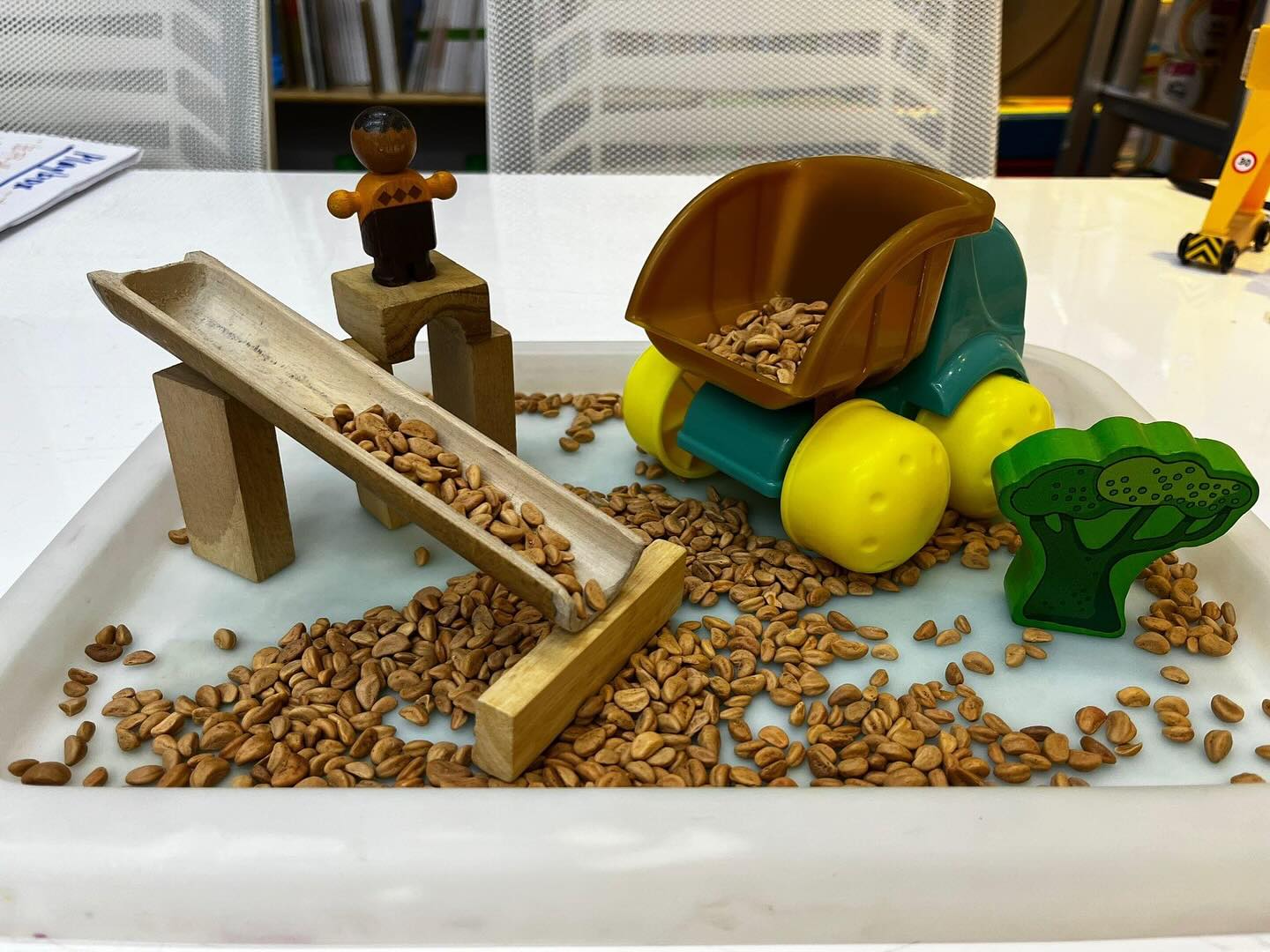 智樂遊戲萬象館最近在館內設有期間限定的室內沙灘污糟貓遊戲,讓小朋友可以在暑假期間涼快地玩沙。山楂籽沙有獨特觸感和清新涼快感,小朋友在沙池中伸手觸碰、隨意撥弄,挖掘找尋小貝殼,亦可以用漏斗和膠樽自製小沙槌。此外,沙池內還有方塊積木、管道、工程車、吊重建築玩具等,小朋友可以發揮想像力,天馬行空地玩樂。