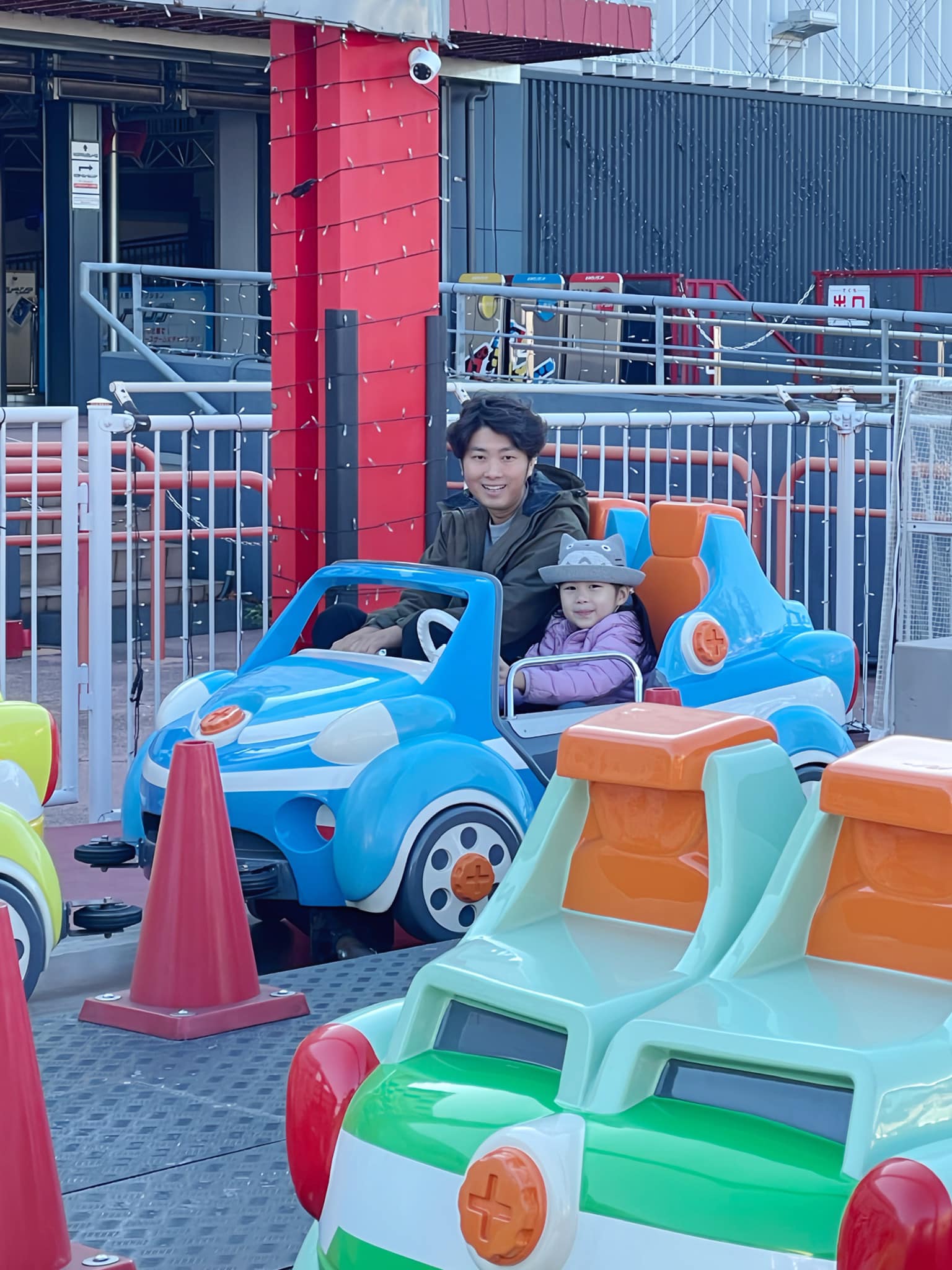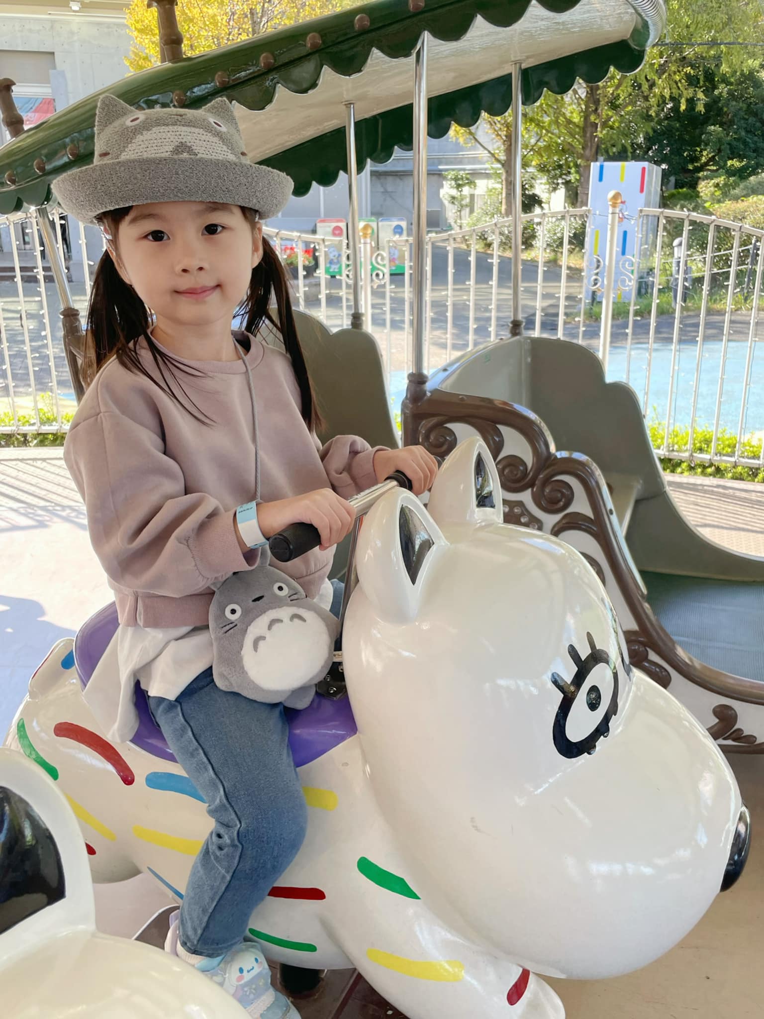 心柔未足5歲,身高剛好達到110cm,也大概可以玩到超過20款機動遊戲設施,比較靜態的機動遊戲有小火車、旋轉木馬、消防隊噴水槍;比較刺激的機動遊戲有家庭小賽車、奇蹟狗屋、狗狗飛車。