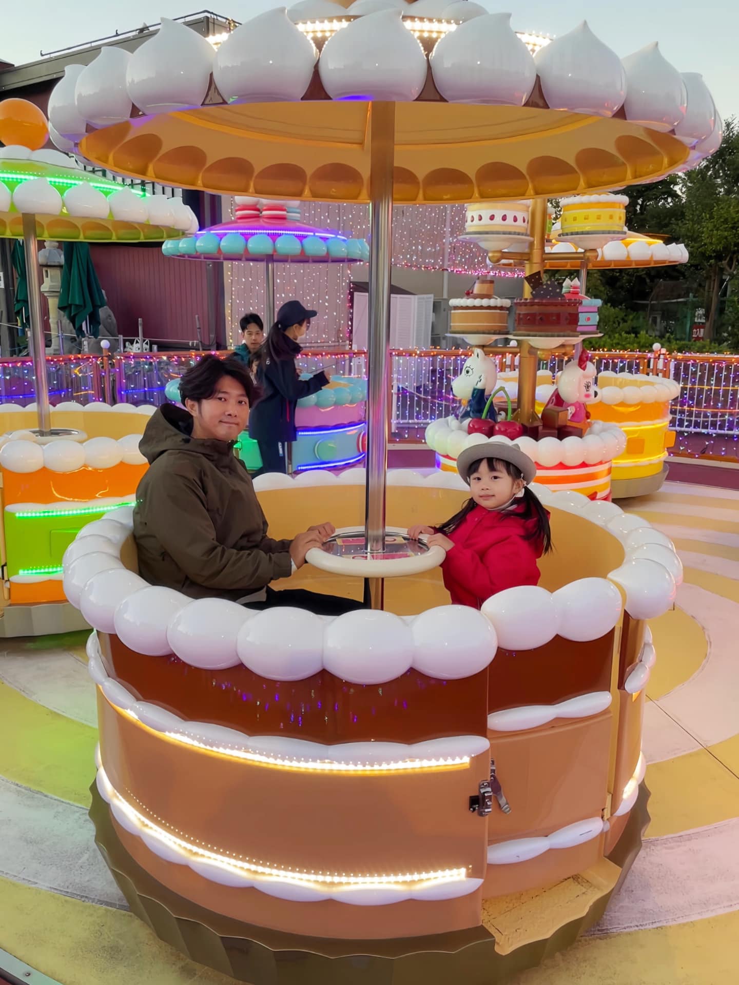 心柔媽媽首先在京王讀賣樂園車站,搭乘鄰近車站的空中纜車「Sky Shuttle」,大約5至10分鐘便可以抵達遊樂園。樂園很適合幼兒去玩,部份機動遊戲只需身高90cm或大人陪同便可參加。如果身高達到110cm,比較刺激的機動遊戲都可以玩到。