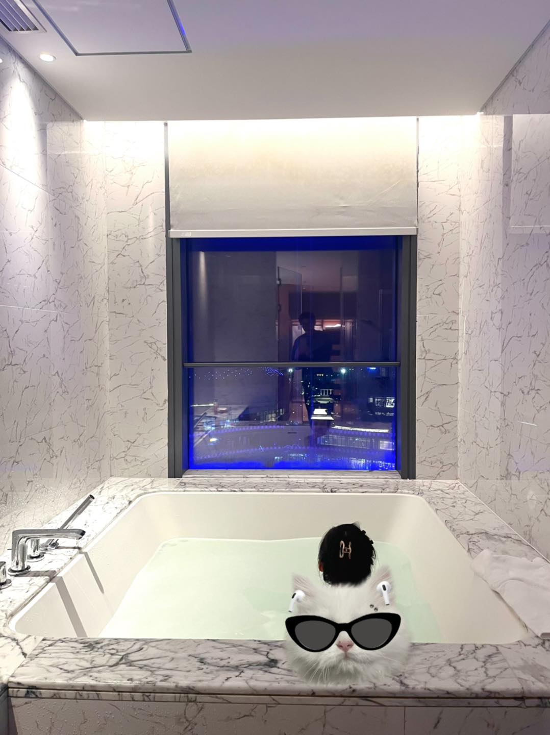 此外,酒店內有恆溫泳池,就算在冬天也可以舒適地游泳。加上這次入住的房型有大浴缸,在夜上看著美景浸浴好寫意。