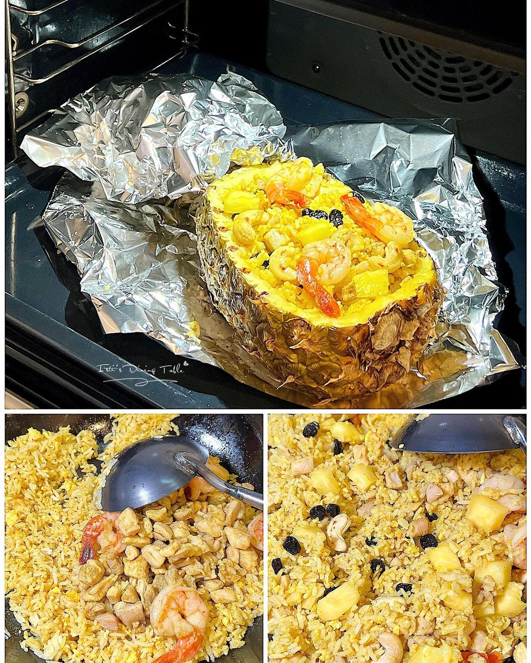 菠蘿炒飯自煮好簡單,建議用新鮮菠蘿,另把原個菠蘿直接上桌特別吸睛,好啱宴客或是Party煮。此外,將炒飯放入菠蘿焗,令米飯更加入味,還有用了泰式豉油(可用生抽代替),味道更正宗!