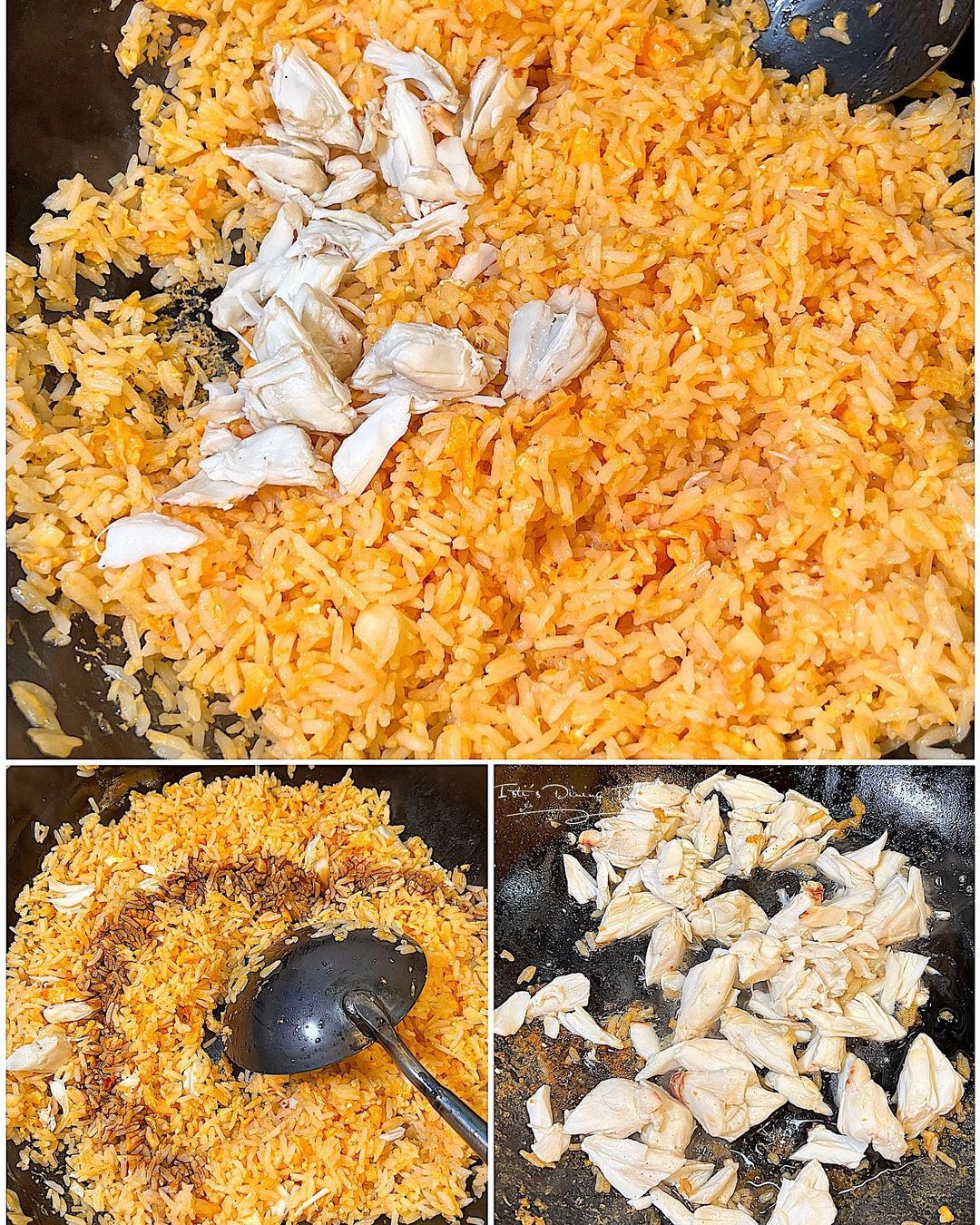 泰國車仔檔的蟹肉炒飯,蟹肉多到好似唔使錢咁,大大粒超飽滿,啖啖肉超正!香港餐廳好難食到咁足料的炒飯,一於自己整!今次買了一罐現成蟹肉,不用拆肉;若買不到蟹肉,可以用蝦或雞肉代替,同樣好味!