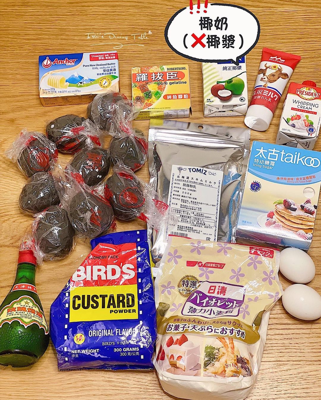 流心餡材料(7g一份):咸蛋黃 3隻約45g、淡忌廉 80g、椰奶 30g、牛油 15g、奶粉 13、糖霜 15g、吉士粉 3g、魚膠粉 4g