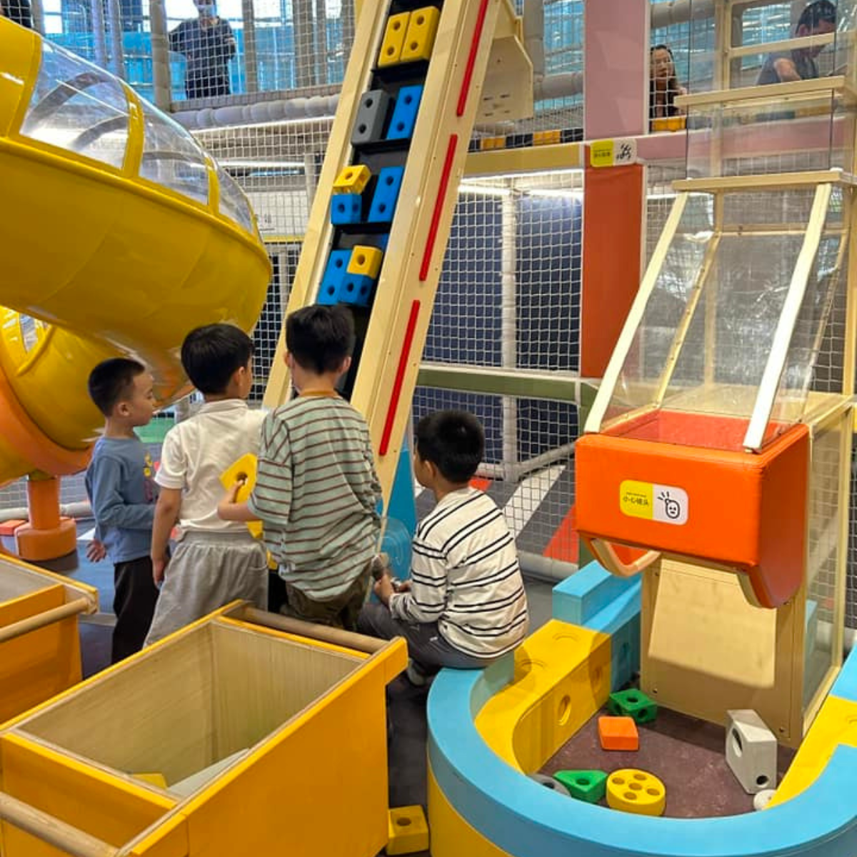 在「水的故事」展區,小朋友可以化身漁民,駕駛漁船出海捕魚,在船上裝卸貨物等,可以考驗他們手眼協調。其中有一條超長滑梯,深受小朋友歡迎。