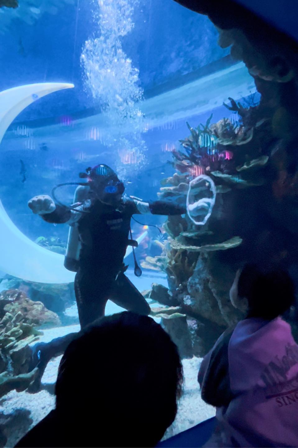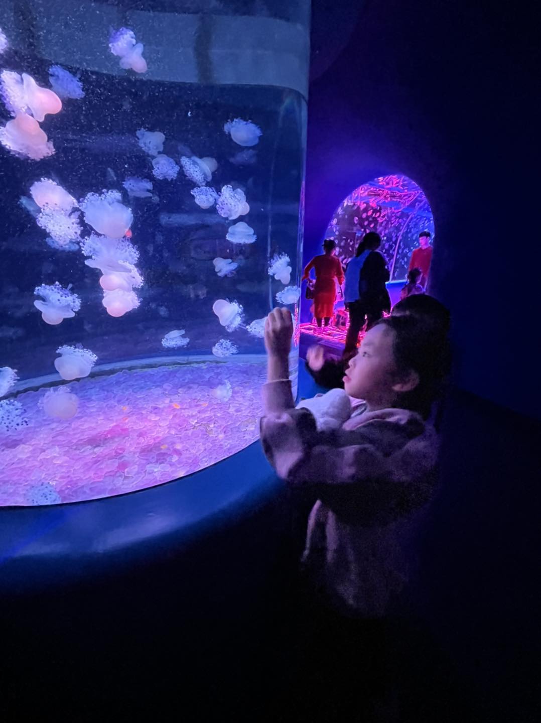 Chloe媽媽和Candice下一站去到歡樂海岸購物中心,商場有好多playhouse,不過她們這一次的目的是海洋奇夢館 !Chloe媽媽表示,其實海洋館並不算大,但也分了水母、珊瑚、海獅劇場3個區域,小朋友看到海洋生物都好開心。館內有許多水母,大魚缸內還有職員潛水表演,Candice和其他小朋友都看得好開心。海獅劇場也十分吸引人,但因為時間關係就沒有看到到。