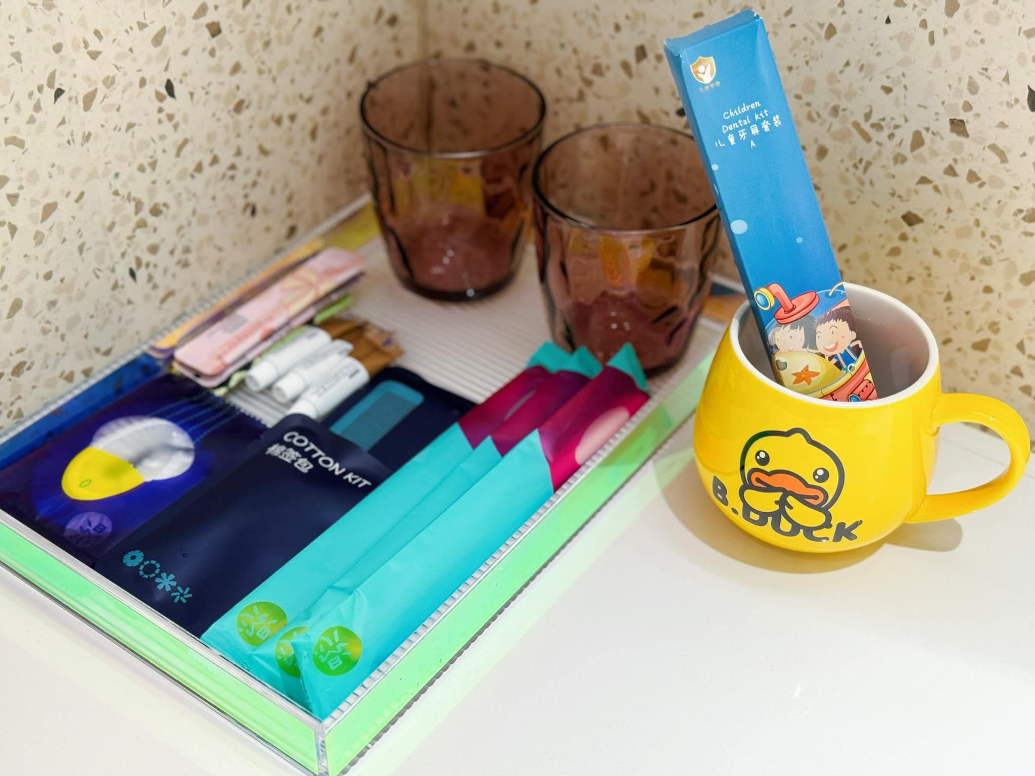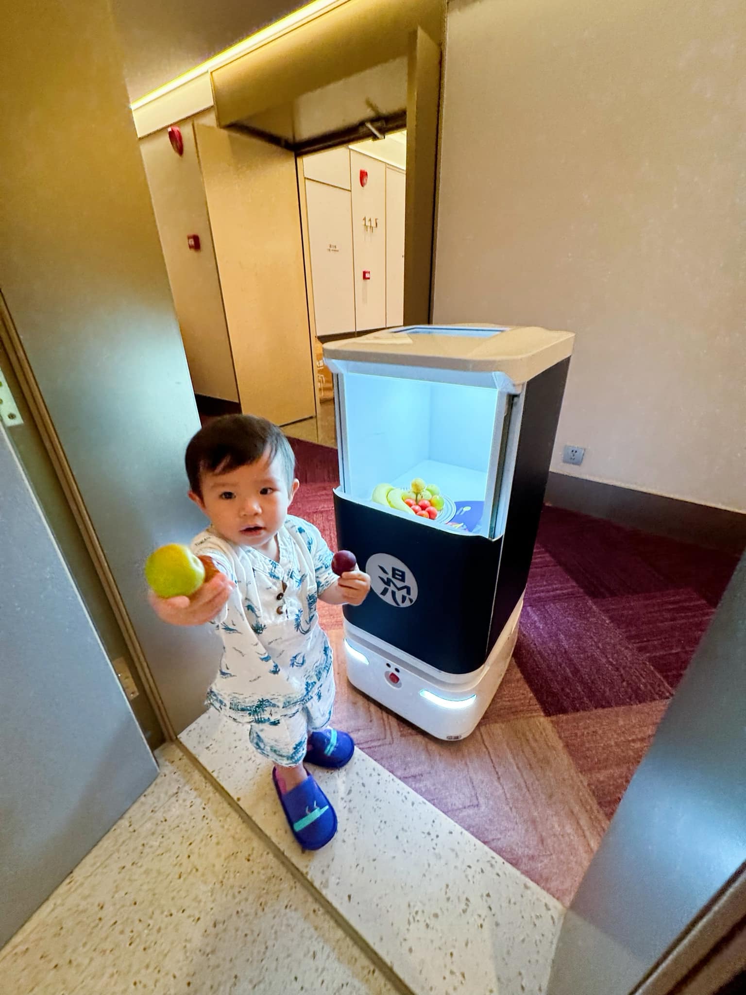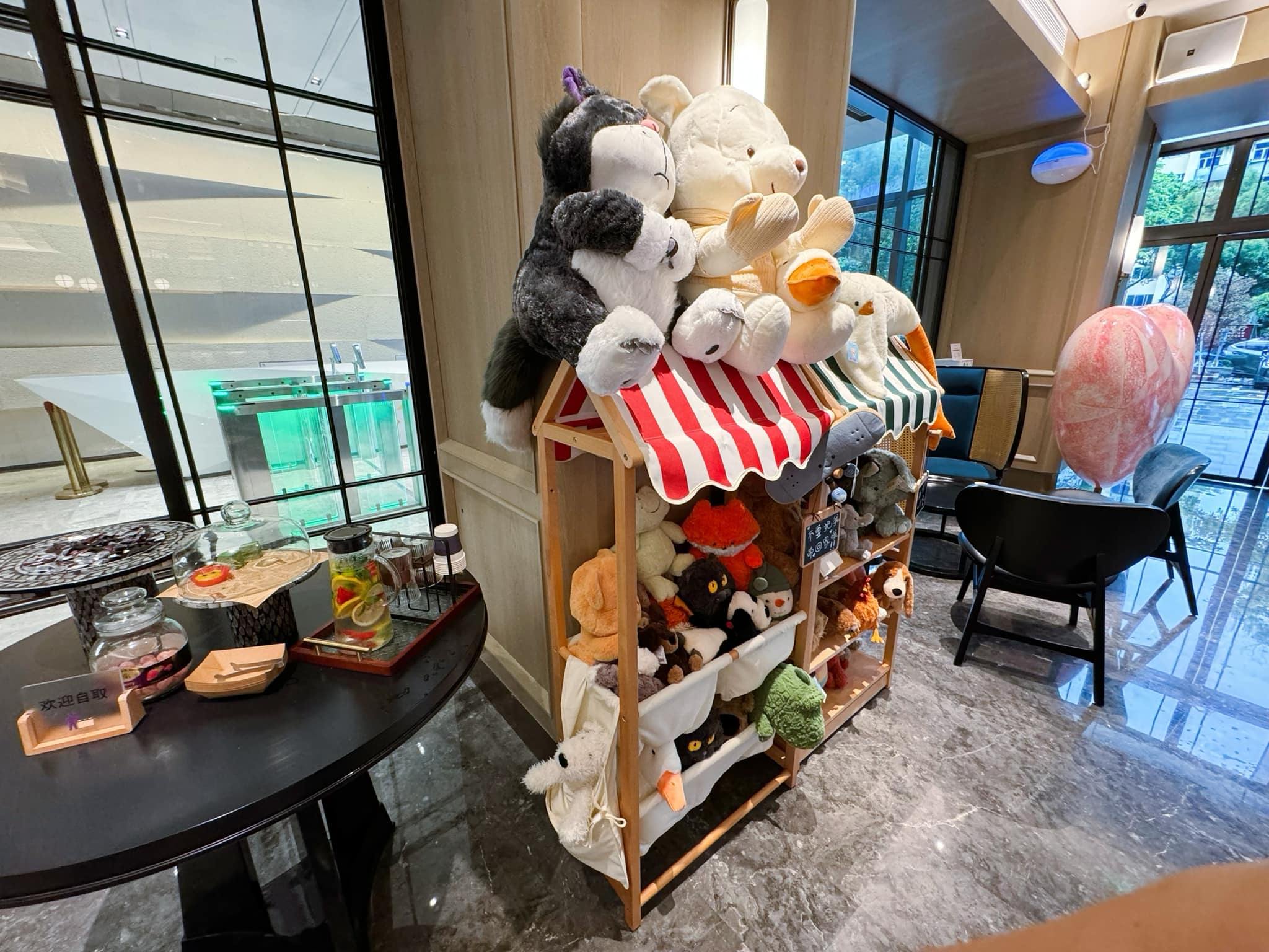 Lazy Li’s媽媽選擇入住漫心酒店的小黃鴨主題房,因為酒店在2023年開業而仍然比較新淨,附近還有很多美食和傳統泰式按摩店。房間的枕頭、床單、牆壁佈置和帳幕都是小黃鴨主題,床上還有大隻的小黃鴨公仔,亦貼心地提供兒童牙刷、小童拖鞋。最有趣的是酒店會安排機器人將Welcome Gift、外賣送到房門口,Lisboy都覺得好新奇!