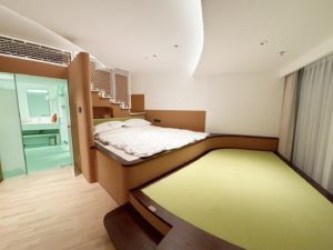 悅.熹.遊媽媽今次帶小朋友入住位於深圳景田婦兒大廈的憬居酒店,大廈外型色彩繽紛而被稱為「多巴胺彩虹大樓」,1樓更有4000平方米雙層的兒童探索館可以玩。酒店設有9款不同的兒童主題房,適合有小朋友的家庭入住。悅.熹.遊一家入住的是童趣Party房-環遊山川,房間以棕色和綠色為主,設梯級、滑梯和攀爬隧道給小朋友放電。