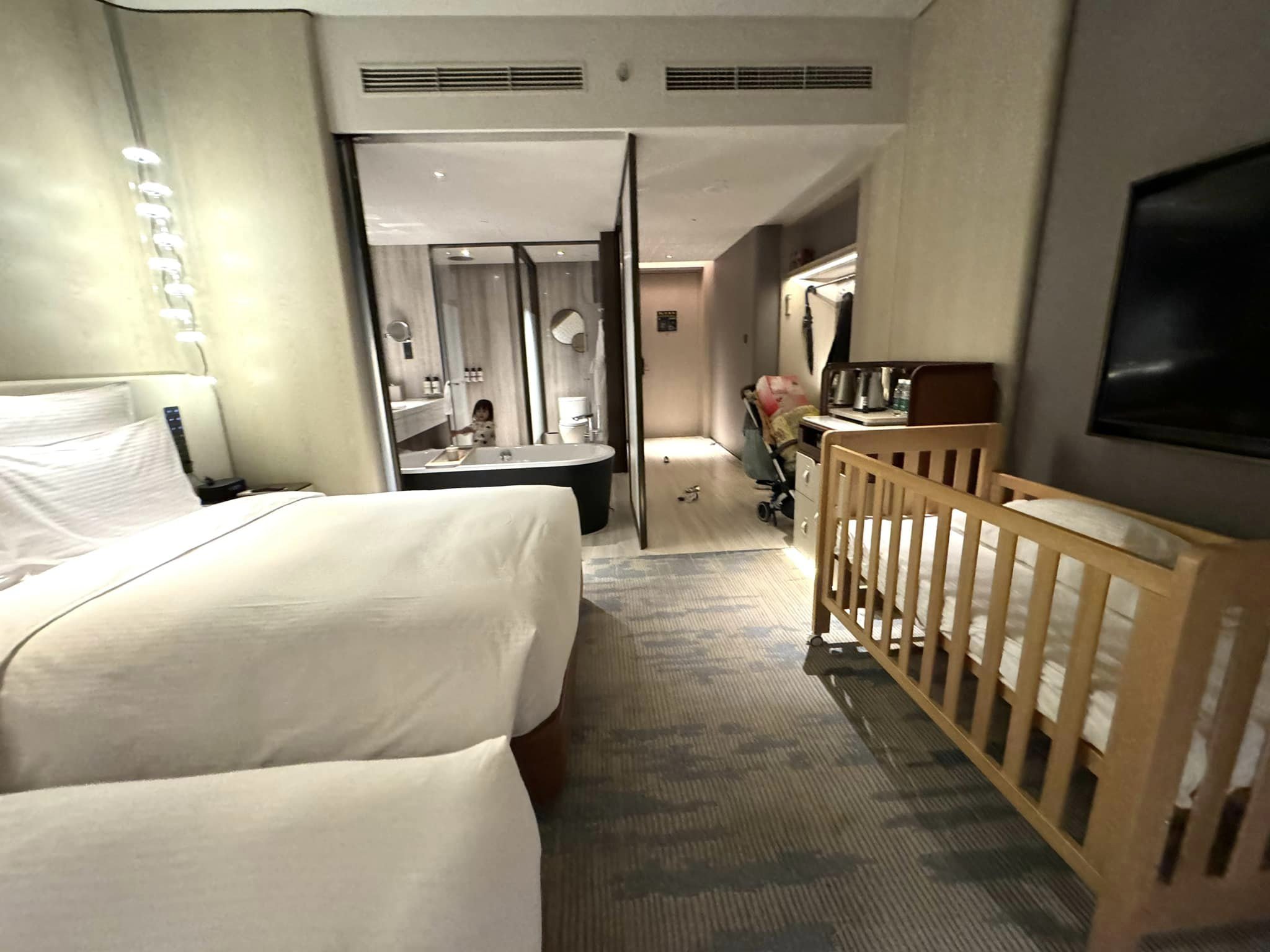 今次為大家介紹的五星級酒店——深圳深鐵鉑爾曼酒店,喺2022全新開幕,好新淨!網站有多款唔同套票,今次媽媽就選咗入住豪華雙床房,2大2小一晚$9xx起,性價比超高!房間位於52樓視野超廣闊 ,客房46平方米空間感十足,有浴缸,浴室廁所乾濕分離,床褥軟硬適中好好瞓,可以免費加BB床~浴室有兒童牙刷、洗手凳仔提供!另設有親子主題套房,適合親子入住。