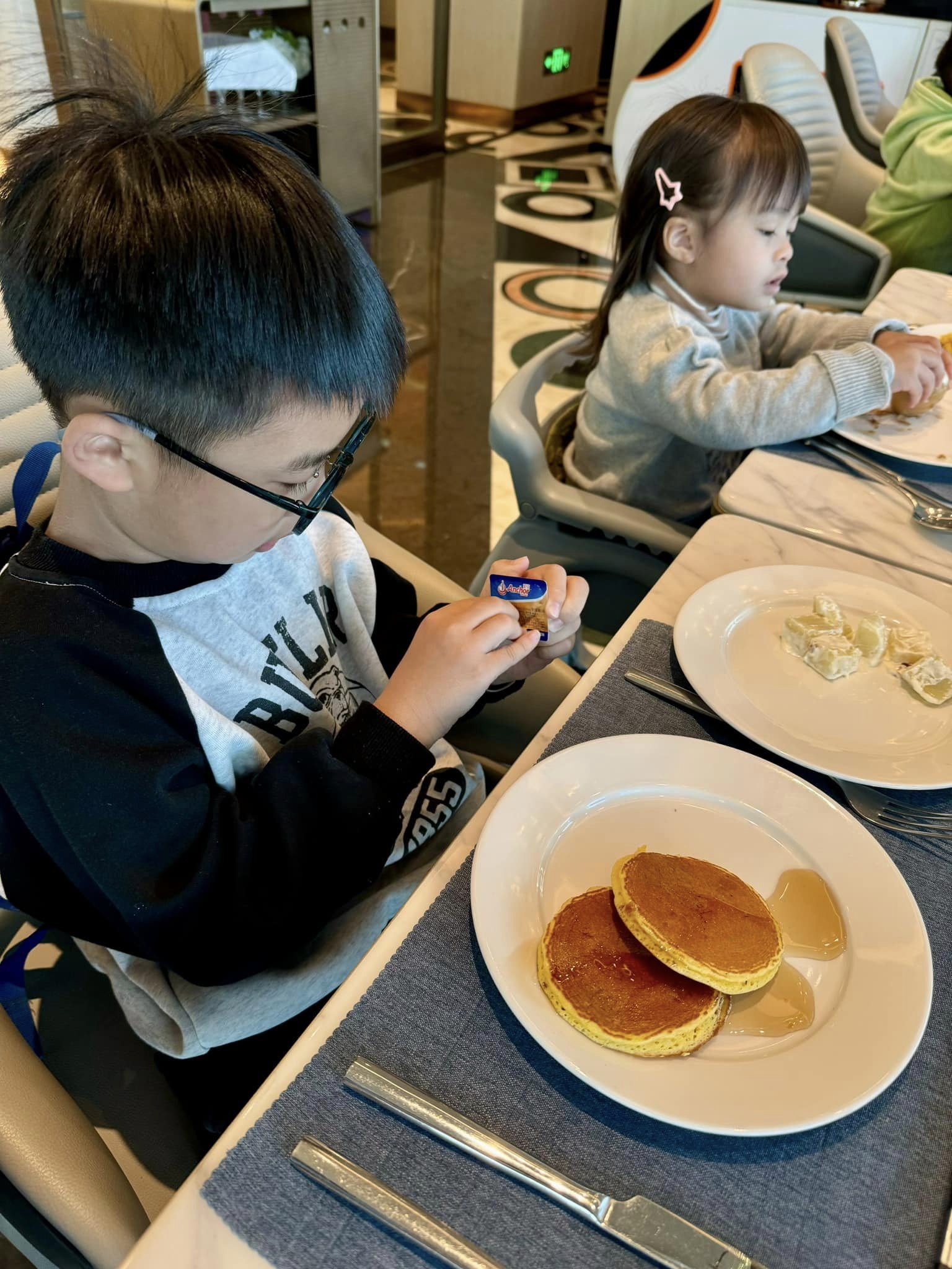 媽媽選擇的套票包2人自助早餐,酒店仲升級小朋友免費食,早餐款式都多選擇,味道都唔錯!推介佢嘅酥皮包好食!