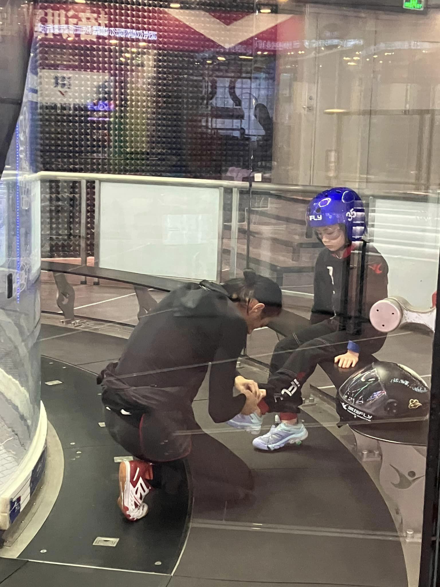 媽媽表示,之前試過澳門airborne室內跳傘(風洞),還是喜歡iFLY 室內跳傘這個品牌,而之前在新加坡、悉尼都玩過。iFLY 風洞採用世界通用的風洞培訓認證體系IBA,上次在深圳店更有兩位室內跳傘運動現役國家隊運動員駐場教學,感覺安全性、專業性較高。