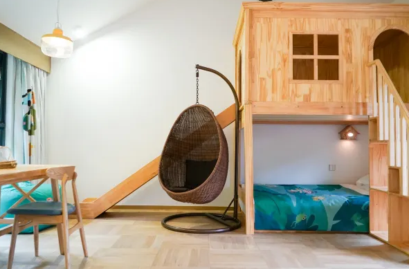 - 房價:遊戲滑滑梯親子游家庭套房/滑滑梯遊戲雙床房/鞦韆庭院家庭親子套房/童趣木質庭院園藝親子家庭房$539/每晚起