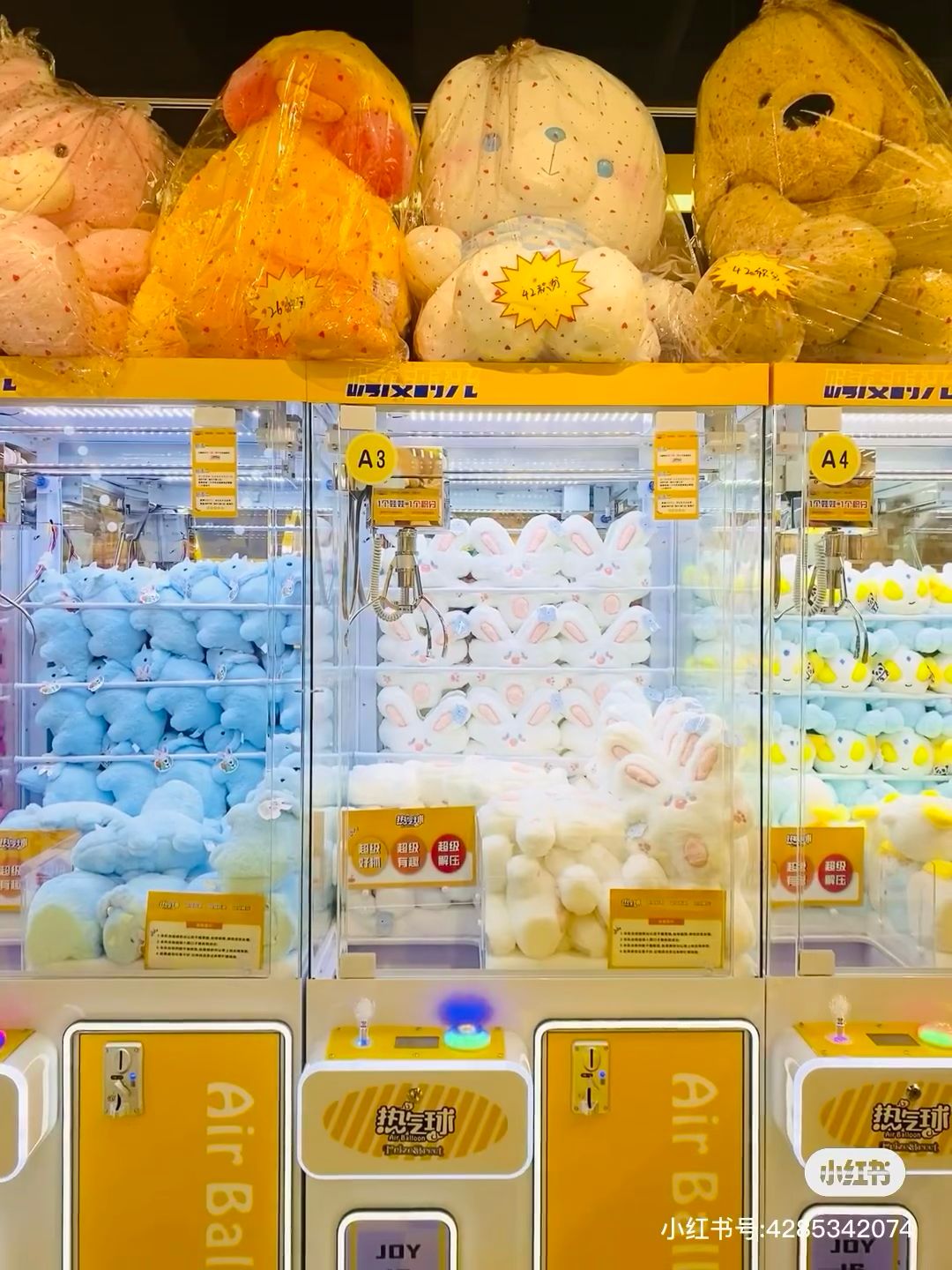 位於福田領展中心的熱氣球夾公仔舖價錢比較便宜,只需¥14.9就有30個幣可以玩,¥69.9人民幣就有100個幣。公仔款式亦很多,而且品質不錯,很容易夾到一架手推車,很有參與感。