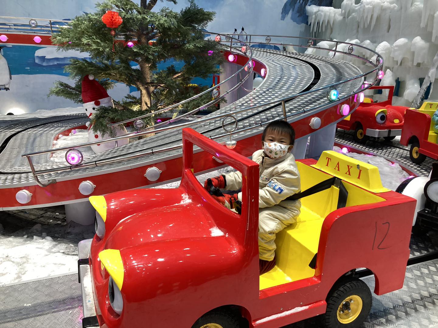 一進入冰雪世界,就被眼前的冰雪城堡吸引,感覺好像走到冰雪小鎮一樣。豬仔包第一個玩的是「雪國列車」,大人或小朋友都可以玩。列車好像迷你版過山車在路軌上行走,車速不算快,但在冰天雪地玩會讓人特別開心。玩過一次,豬仔包已經說要再玩!