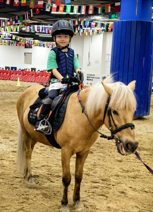 室內馬術訓練場「騎樂馬術Joy Pony」在中國有超過18家分店,在深圳萬達中心、觀瀾湖新城、壹方天地也有分店。小朋友一到騎樂馬術就可以先穿好裝備,然後進去和馬仔打招呼、互相熟悉一下。「騎樂馬術」的馬都會用食物名來取名,例如細佬騎的馬叫芒果,簡單易記。