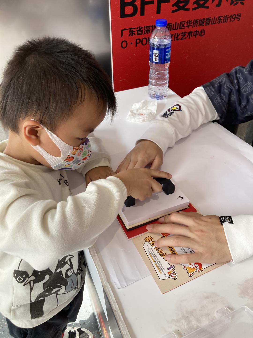 由於進入室內是需要預約或現場排隊掃二維碼入場,所以她們就一併玩了免費印畫先。小朋友印齊6個大印章,就會變成一幅彩色的麥麥小鎮畫,豬仔包看羓好喜歡!第一次是印在手冊,第二次玩就是工作人員派的卡上面印,豬仔包媽媽表示沒想到簡單幾個印就很好看,小朋友也很有滿足感。