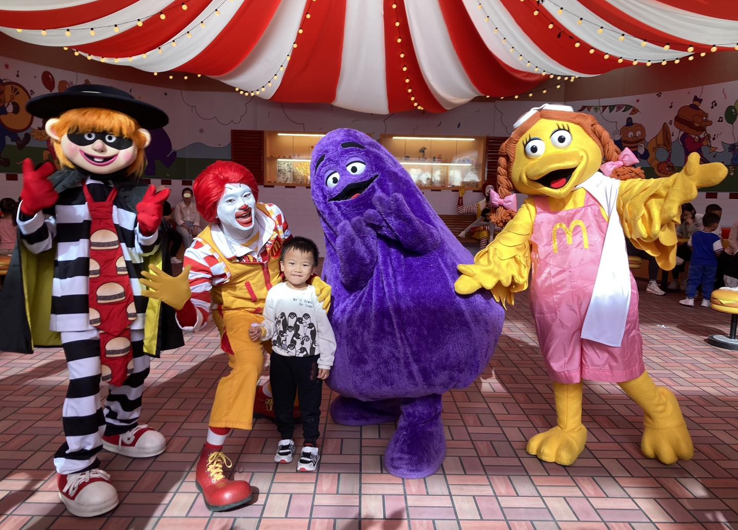然後,豬仔包還遇到了「樂園劇場」驚喜一刻時間,看到麥當勞4小福走進來和大家輪流拍照。