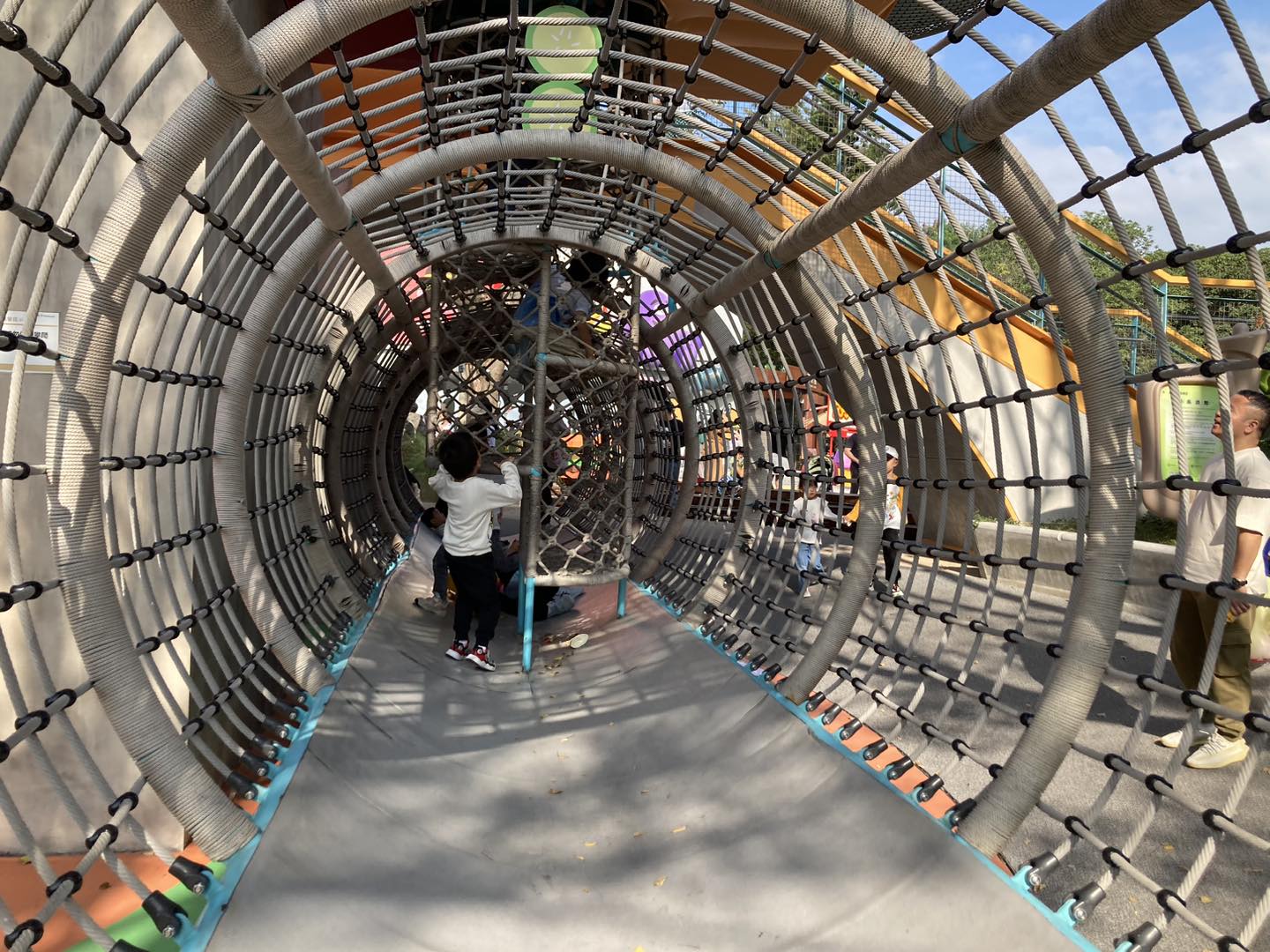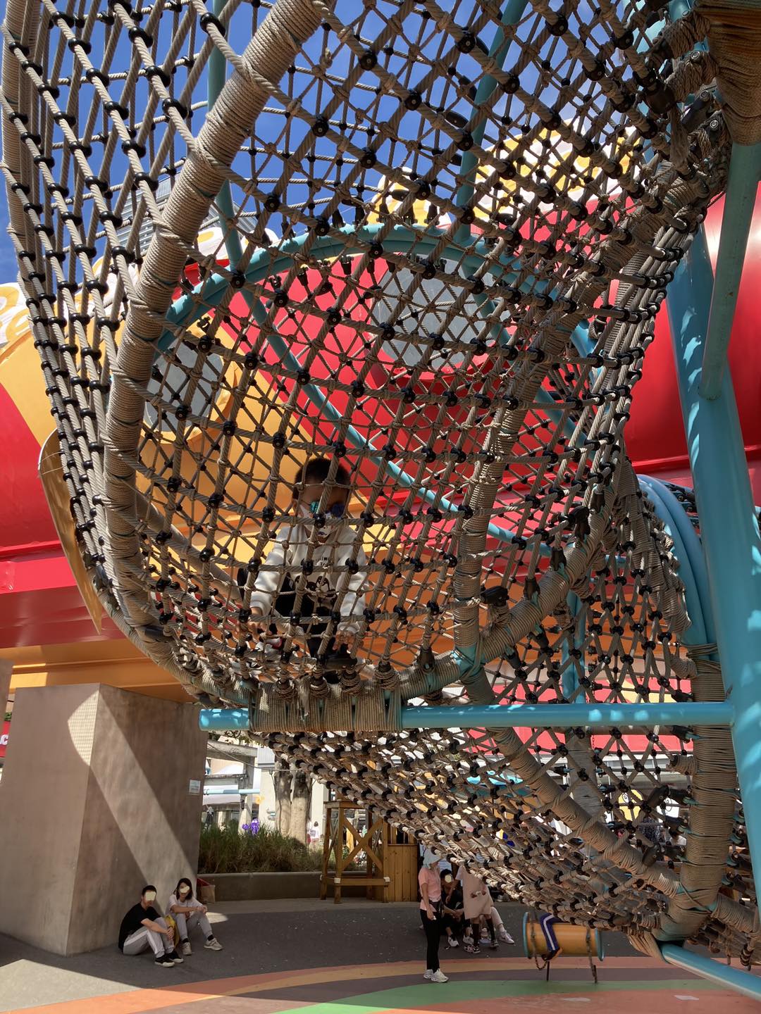 戶外園區除了有好多集章打卡點外,還是一個兒童遊樂場,有長滑梯、繩網、小搖椅等遊樂設施。豬仔包媽媽好欣賞園區設計,要上去玩長滑梯,可以走長樓梯、旋轉樓梯、繩網或攀爬架等不同方式,不單可以迎合不同年齡小朋友需要,還可以讓小朋友以不同方式去玩和挑戰。