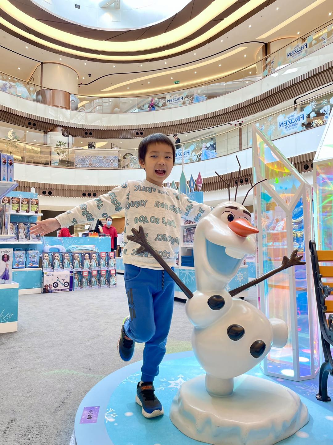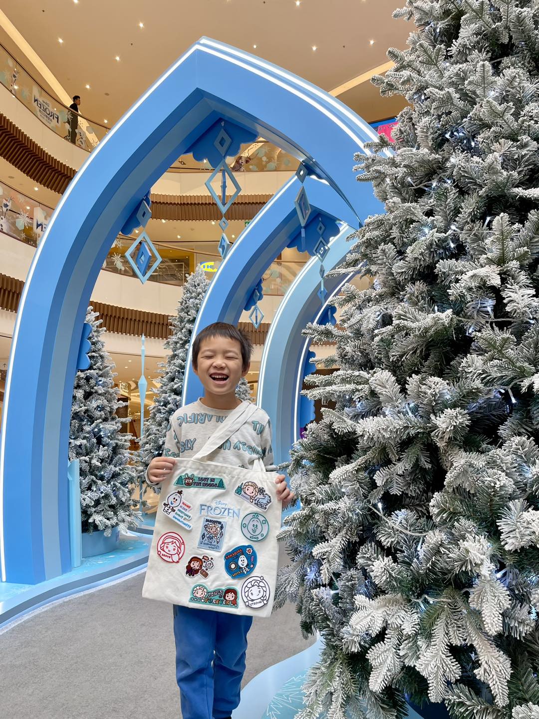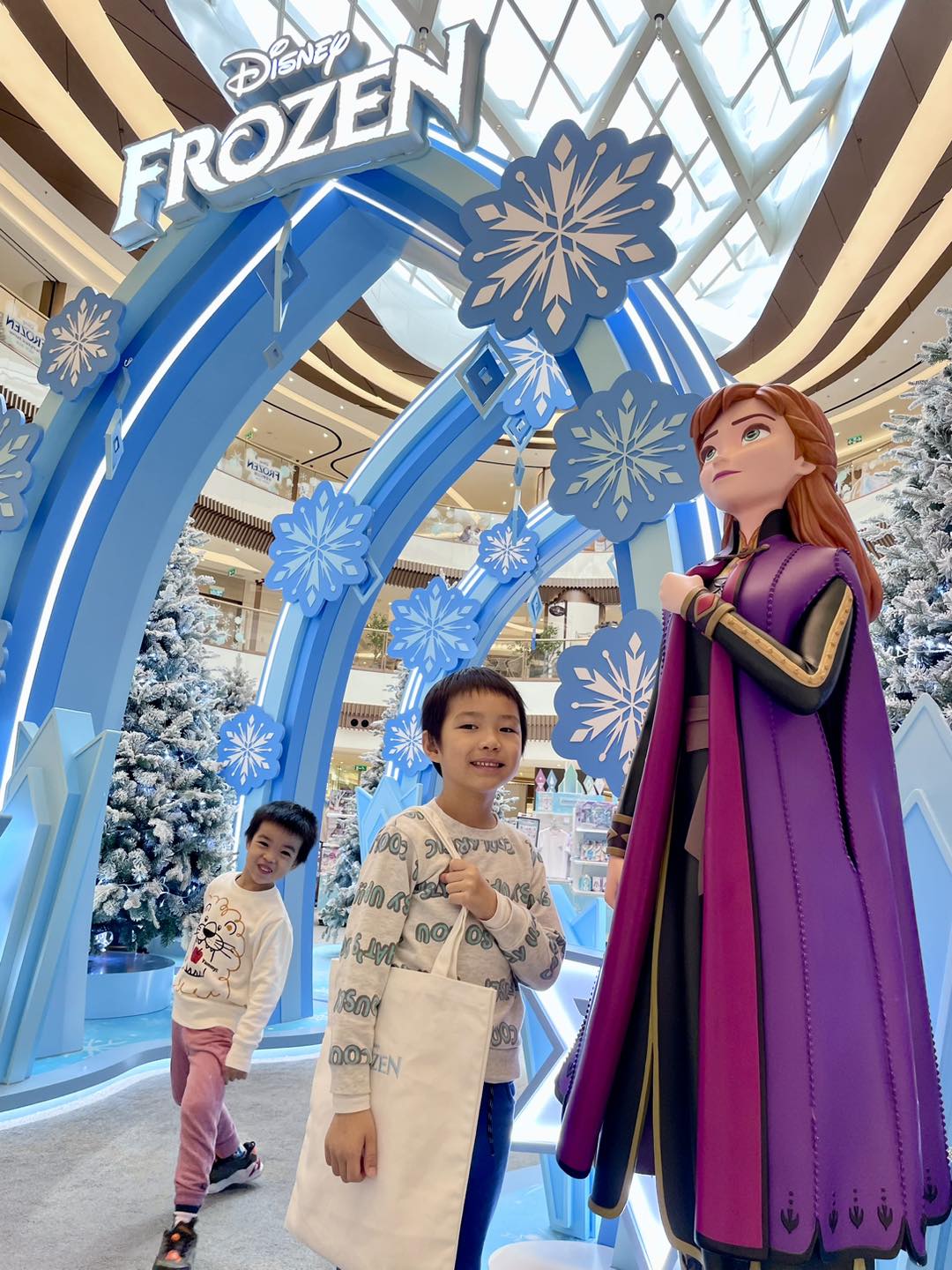 湜澄媽之後帶兩兄弟到星皓廣場,在「冰雪夢幻之旅」佈置拍下很多照片。商場有 Elsa和Anna歡迎大家進入由極光和水晶打造的4米高隧道,在長櫈的可愛雪人Olaf及冰雪森林,澄兄湜弟在舖滿雪的樹之間拍照,真的很有冬日感!星皓廣場還有 為「冰雪夢幻之旅」設計限定精品,包括有名信片、貼紙、小背囊、毛毛小包等。其中最特別莫過於刺繡章,每個角色都好可愛,可以燙上衣服和布袋等,設計自己獨一無二的Frozen OOTD!半透明的拼圖鎖匙扣也很好看,而且是用盲盒形式抽,兩兄弟都買了一些「手信」準備送給妹妹和朋友。商場的「冰雪夢幻之旅」活動只做到2024年1月31日,有機會去澳門旅行的話記得要把握機會!大家在商場和Elsa、Anna打卡後,還可以帶小朋友到旁邊的氹仔中央公園放電。