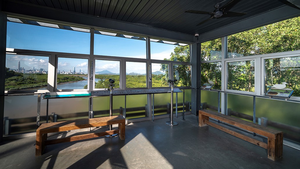 濕地保護區有三間觀鳥屋,大家可以用單筒望遠鏡及觀鳥圖鑑,觀察生態環境和雀鳥,例如水鳥、鷺鳥和琵鷺。