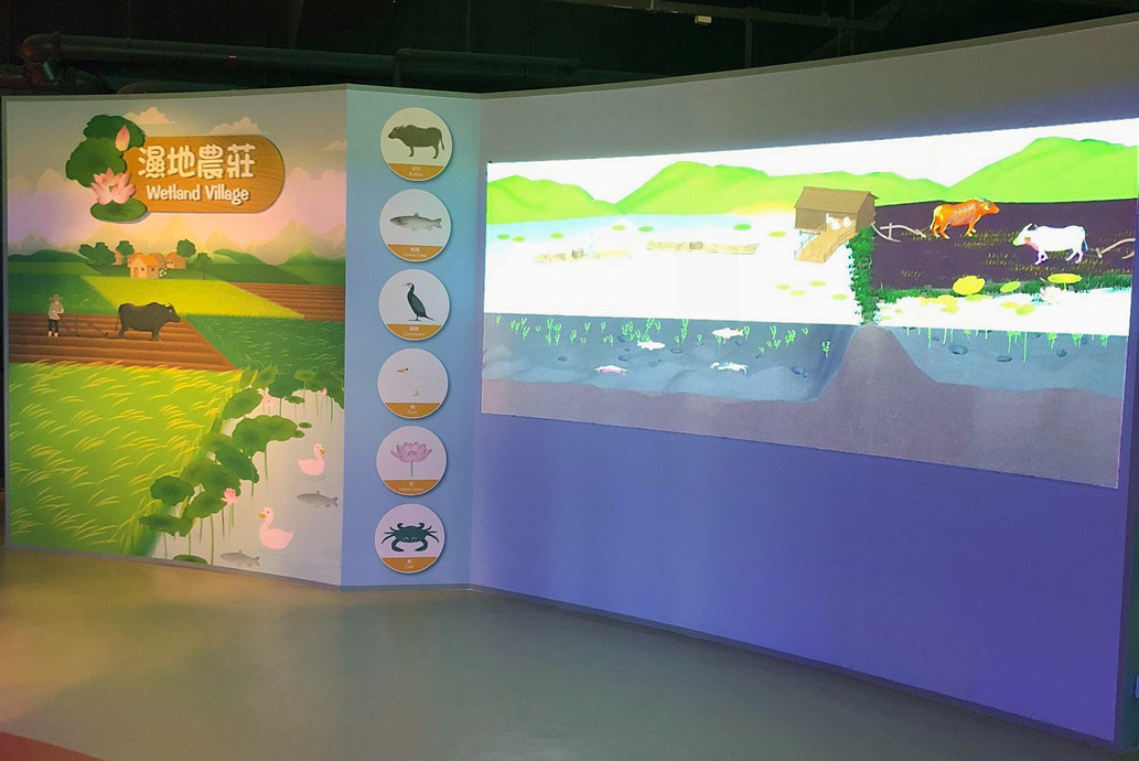 訪客中心有4大展覽廊,分別以濕地知多少、濕地世界、人類文化和濕地挑戰為主題,大家可以看到不同展品和影片,小朋友亦可以看圖書和玩小遊戲。中心還設有室內遊樂區,當中有以沼澤森林為主題的樹屋遊樂室,小朋友可以在參觀之餘,還可以玩滑梯放電。