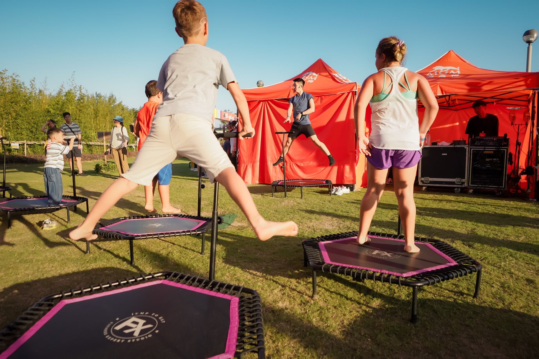 傍晚時分大會將推出不同主題運動的戶外體驗班,包括至潮消脂運動-Zumba彈床運動、瑜珈伸展等。大家可以在佔地約13,300平方米的灣仔海濱活動空間,參與各種戶內戶外的體育節目,享受維港美景。