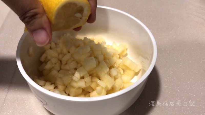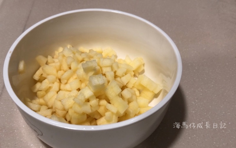 1. 把蘋果去皮切粒,蘋果粒大小按個人喜好