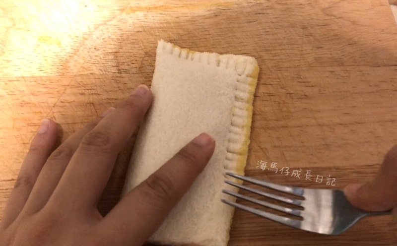 5. 對折方包,用叉壓邊,反轉另一邊再壓多次