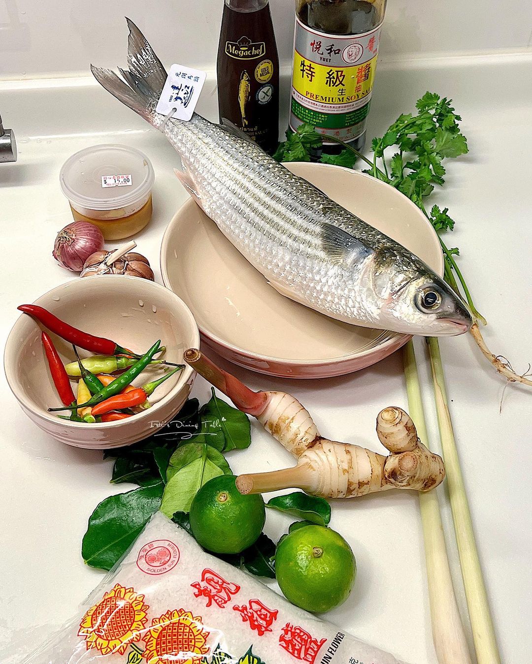 材料:烏頭 1條、香茅 2條拍扁切段、南薑 3片、檸檬葉 5片去莖切絲、青檸汁 1茶匙、粗鹽 1包450g
