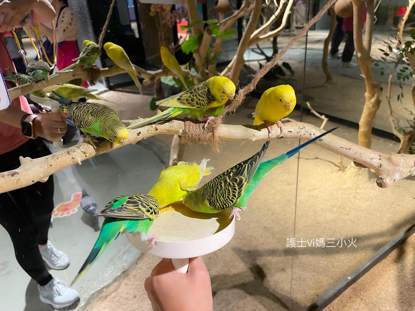 室內動物園分不同的區域,以西遊記做主題區,大家可以戴上圍裙抱水豚君,戴上手套抱刺蝟、倉鼠和兔兔,小朋友印象最深刻是雀鳥區,可以將雀粟放在手攜的圓形餵食台,便會引來很多雀鳥過來啄食,媽媽表示感覺到雀鳥在面旁邊拍打翅膀的風速,但又不會碰到身體,感覺很新奇!