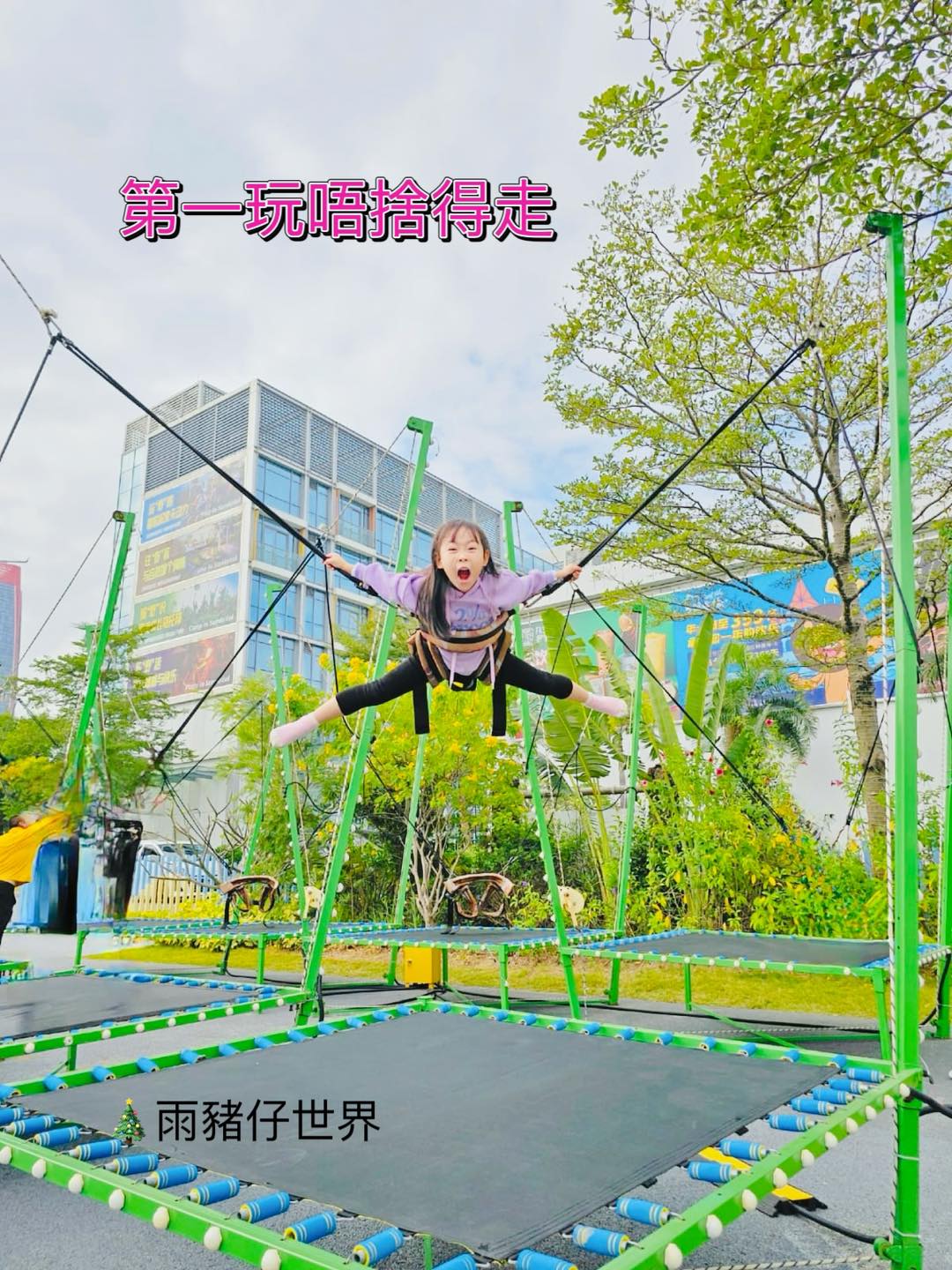 雨豬仔媽媽和朋友選擇了可以一連兩日入園玩的套票,由於未到check in時間,所以就放下行李先吃午餐再去玩。園外已經設有很多遊戲設施,雨豬仔玩了2日跳彈床,又可以坐鹿車四圍走。